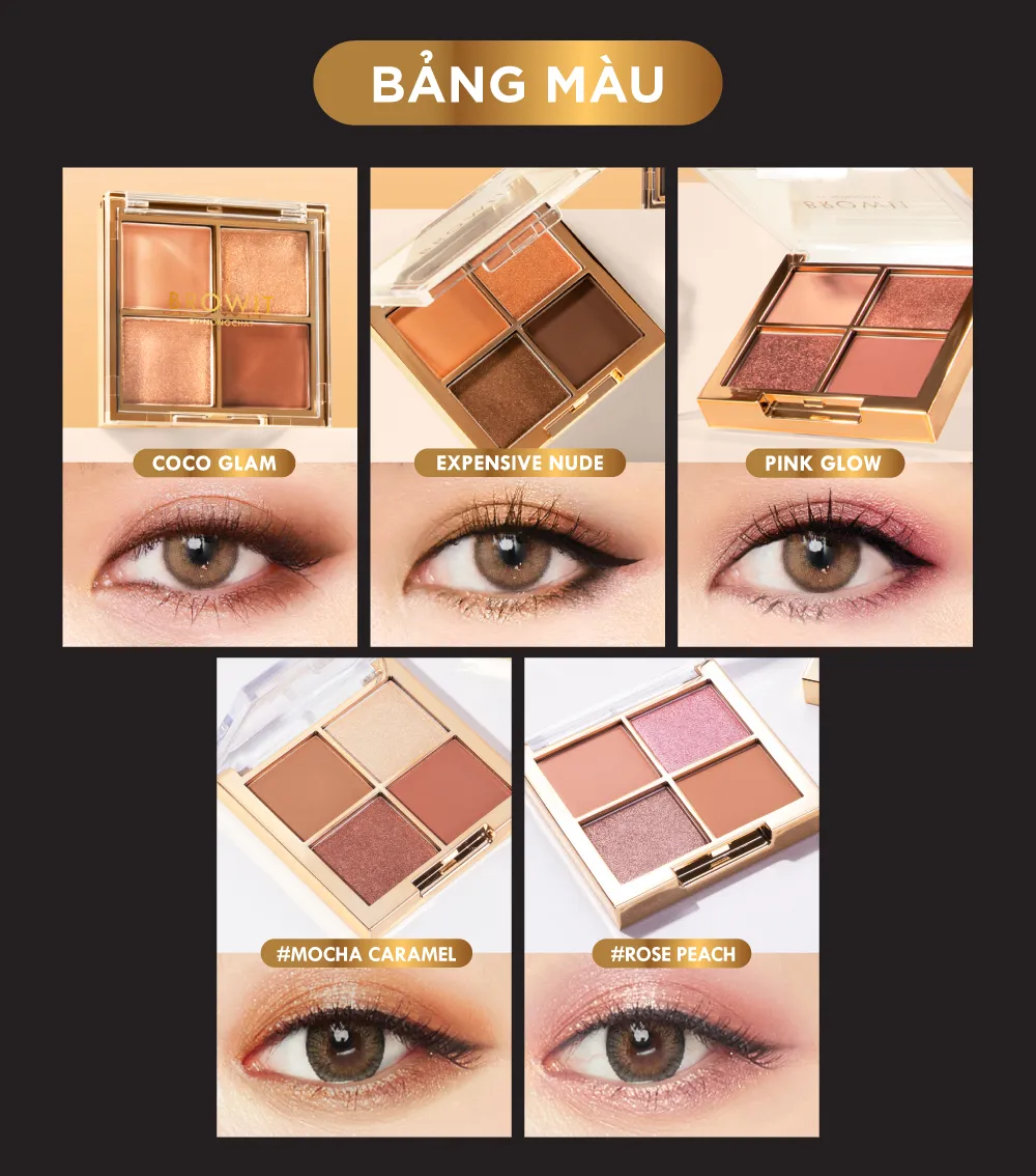 - Bảng màu không kén tông da, phù hợp từ da sáng đến da trung bình ngăm.