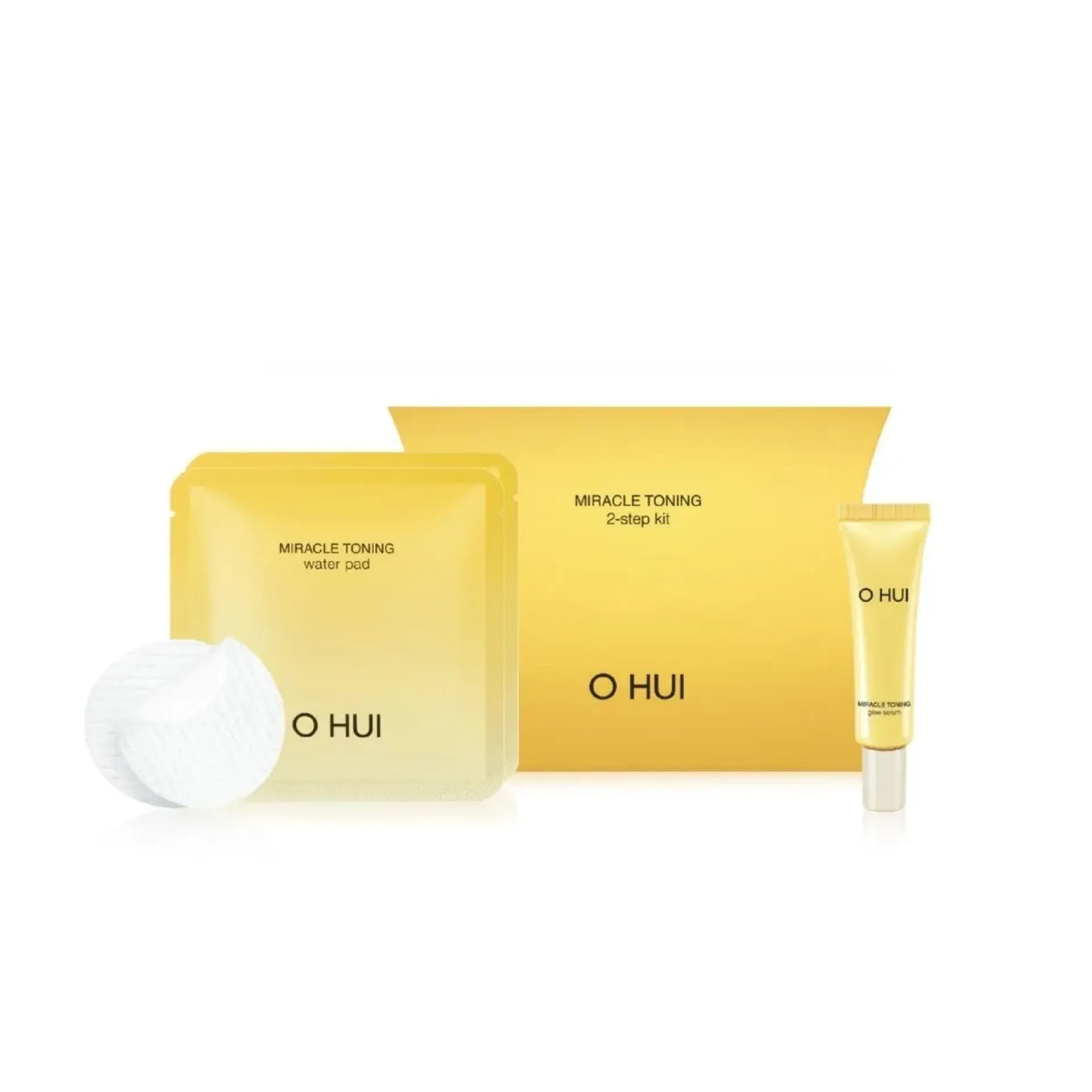 - OHUI Miracle Toning Water Pad: Miếng pad hai mặt bông giúp làm sạch da mịn màng và tươi mát, cung cấp dưỡng chất làm sáng, làm dịu và cấp ẩm cho da (7ml x 2 gói).