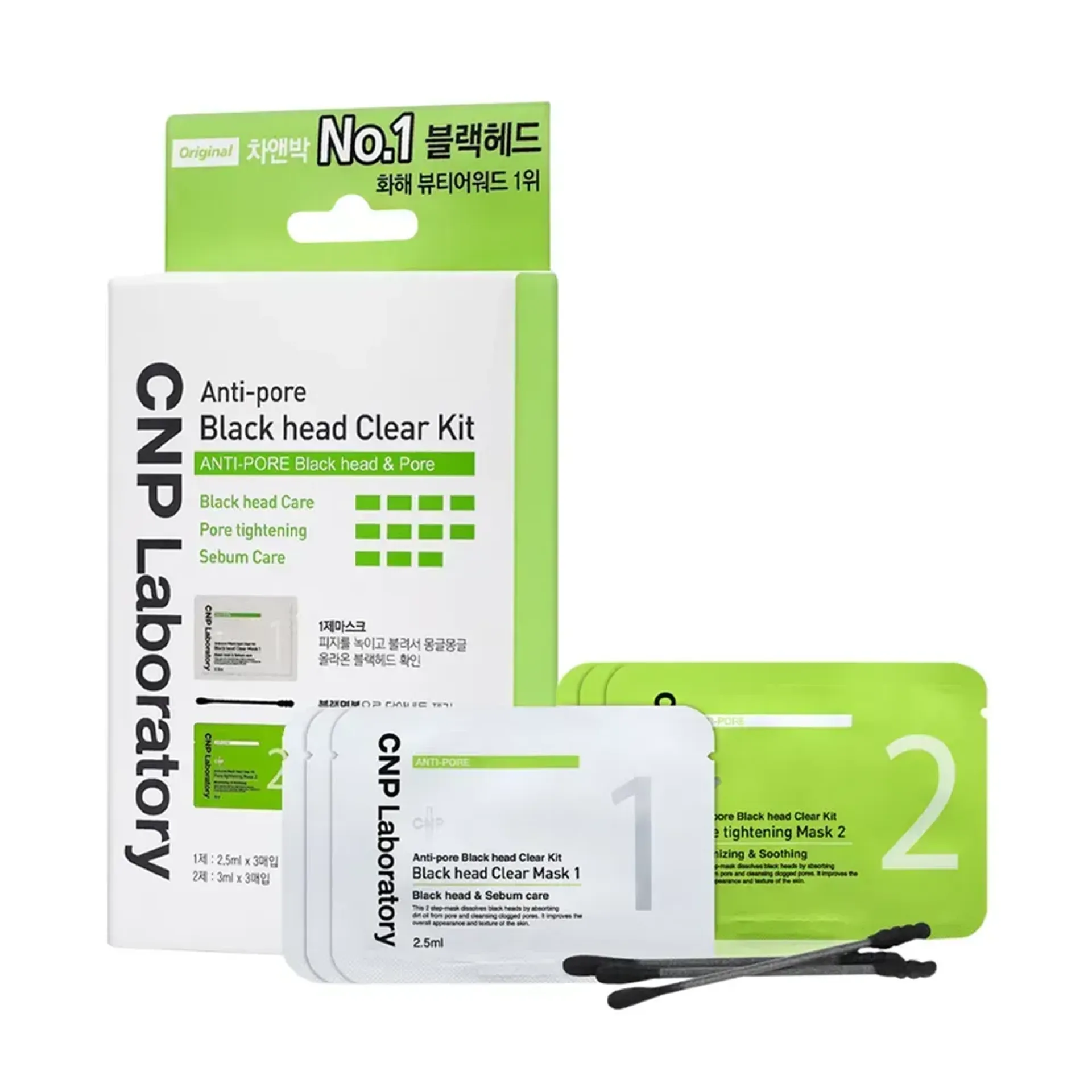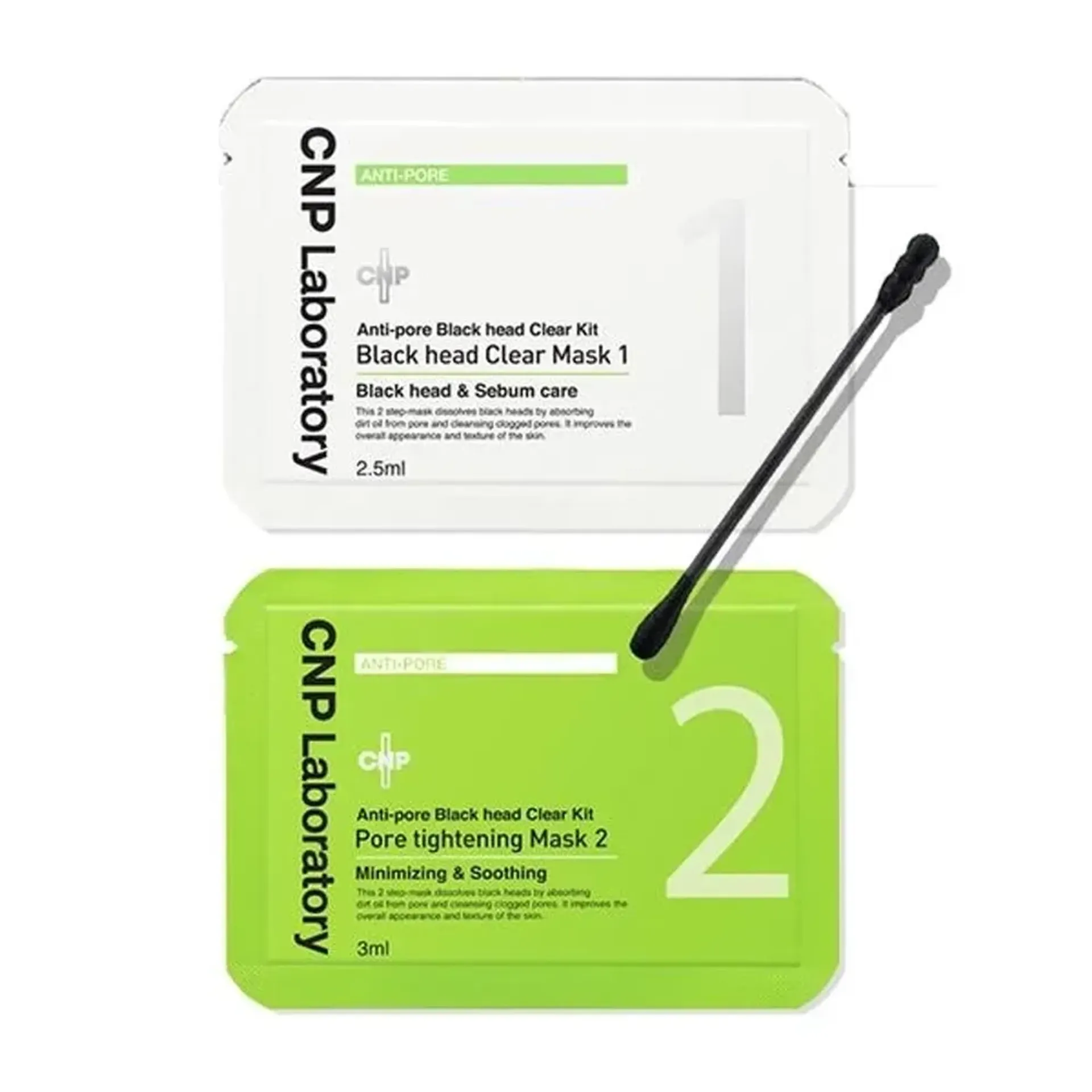 Mặt nạ làm sạch mụn đầu đen 2 trong 1 CNP Laboratory Anti-Pore Black Head Clear Kit đã lọt vào Top 3 Cosmo Beauty Award 2011. Nổi tiếng là sản phẩm chuyên giảm mụn đầu đen, ngừa kích ứng và hạn chế tăng kích thước lỗ chân lông. Bộ kit gồm 2 miếng mặt nạ với công dụng khác nhau. Miếng mask 1 có tác dụng loại bỏ mụn đầu đen, bã nhờn. Mask 2 là tinh chất Zn PCA giúp dưỡng ẩm, kiểm soát dầu thừa và se khít lỗ chân lông hoàn hảo.