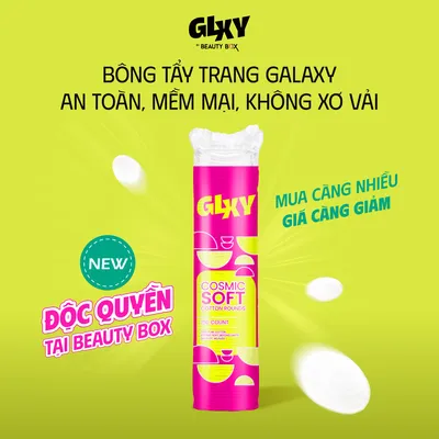 Bông tẩy trang GLXY Cosmic Soft Cotton Rounds với thành phần từ 100% bông cotton tự nhiên an toàn, lành tính cho làn da. Bông cotton GLXY giúp loại bỏ lớp trang điểm, bụi bẩn và dầu thừa một cách nhẹ nhàng, đồng thời có thể sử dụng để đắp mặt nạ như tonThiết kế tiện lợi và an toàn cho mọi loại da, bông tẩy trang GLXY đạt chứng nhận OEKO-TEX Standard 100, đảm bảo sản phẩm không chứa hóa chất gây hại, đạt tiêu chuẩn quốc tế về an toàn dệt may.