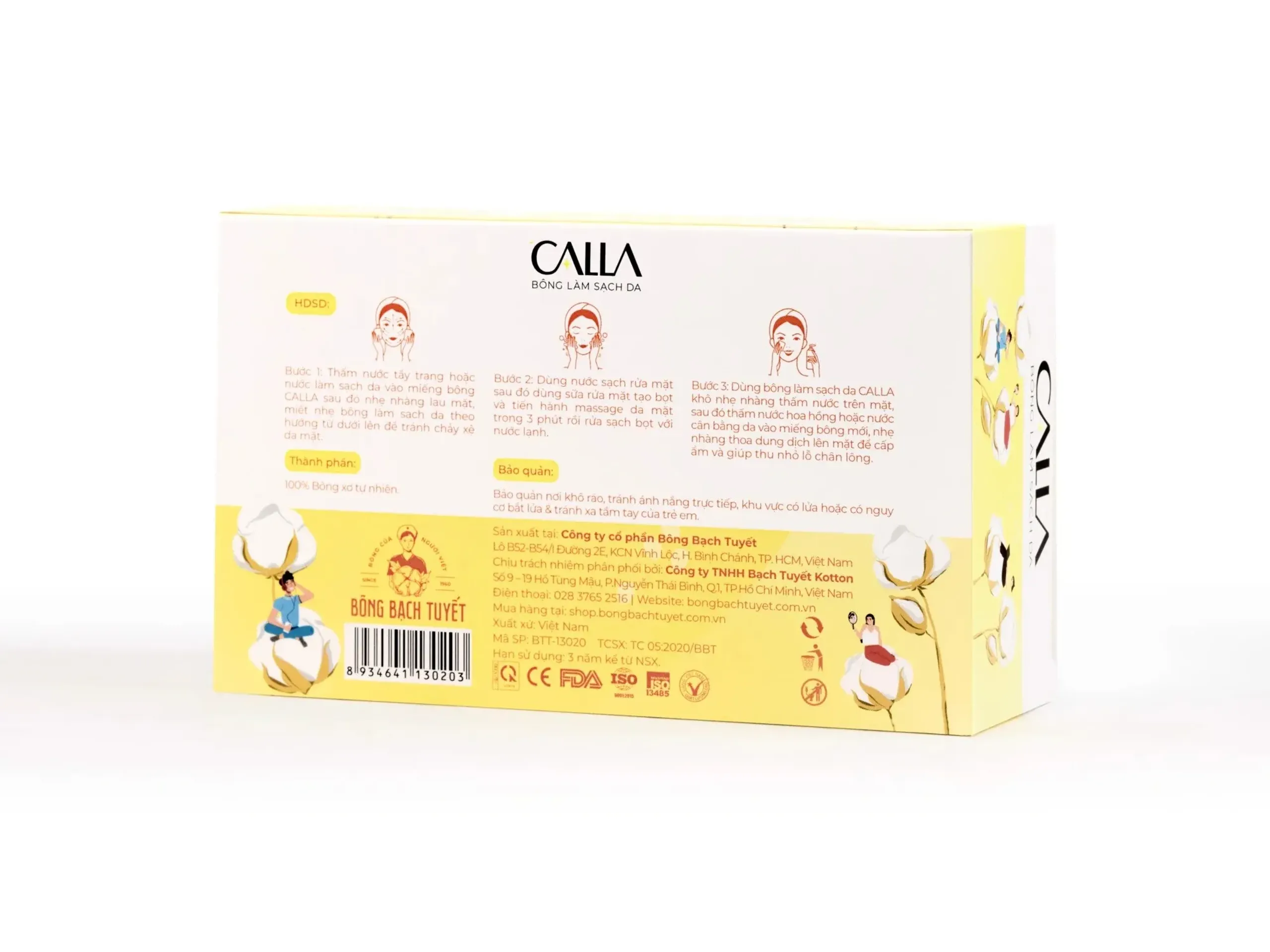 - Sử dụng bông tẩy trang Calla để lau khô da mặt và tiến hành các bước dưỡng da tiếp theo