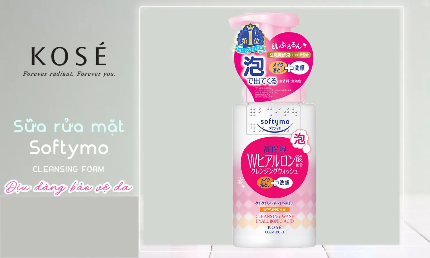 Công dụng: sữa rửa mặt dạng bọt 2 Trong 1 Kosé Cosmeport Softymo Cleansing Wash Hyaluronic Acid làm sạch sâu trong lỗ chân lông, lớp trang điểm cứng đầu một cách nhẹ nhàng nhờ bọt kem xốp mịn. Đồng thời dưỡng ẩm và bảo vệ độ ẩm của da, cùng các tinh chất làm đẹp cho làn da tươi mát.