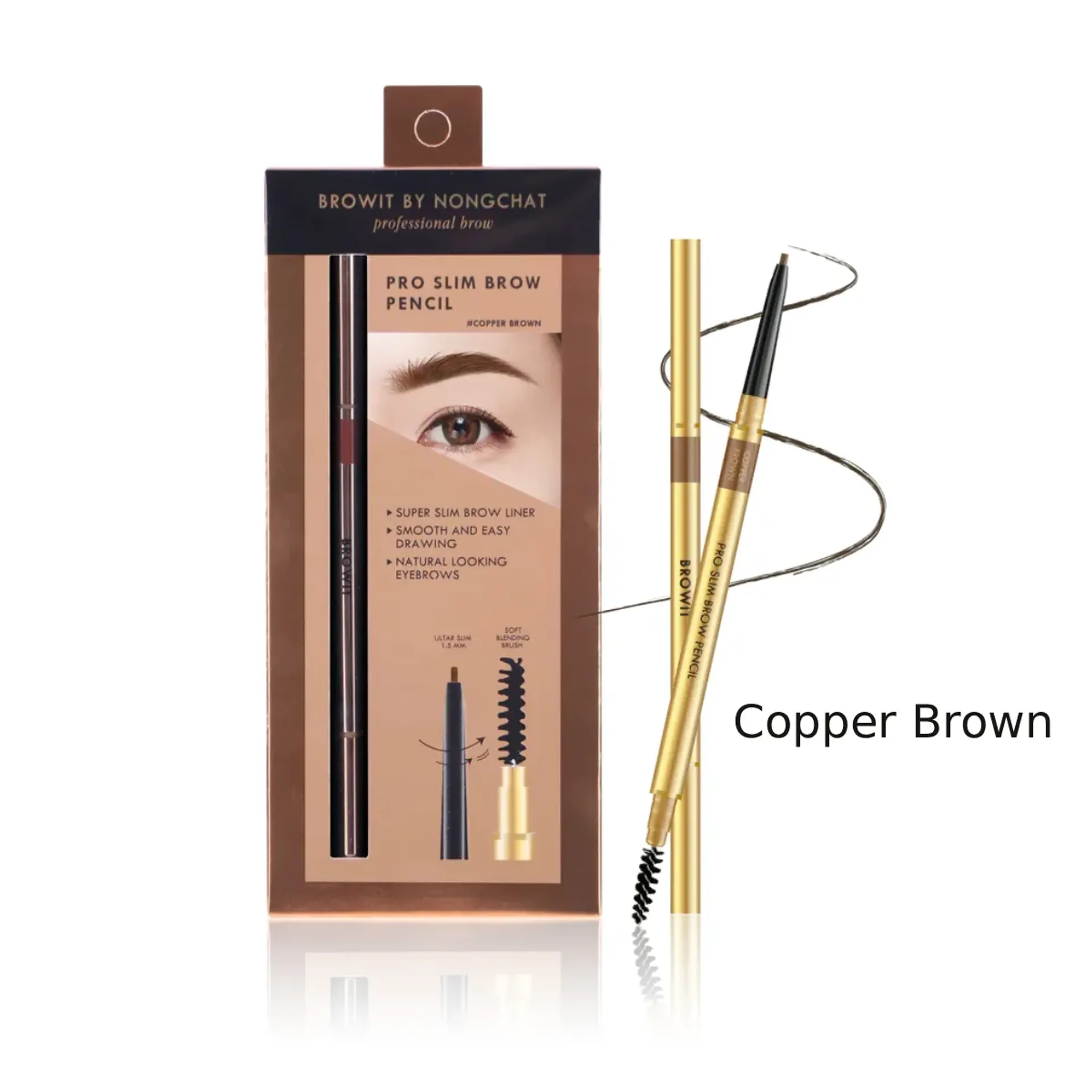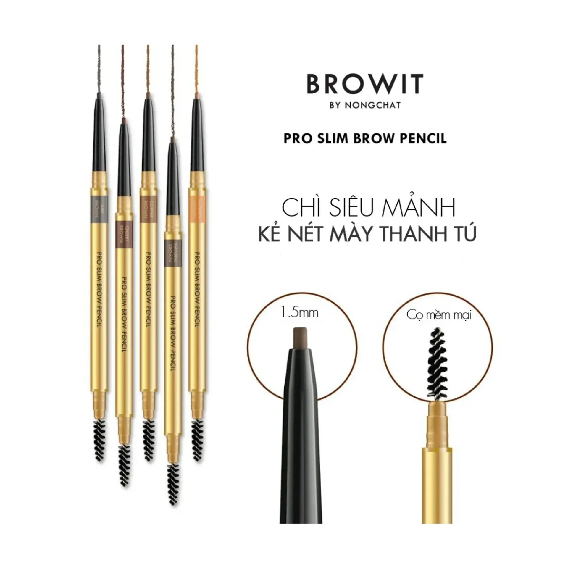 Browit Pro Slim Brow Pencil là dòng chì kẻ mày cao cấp đến từ thương hiệu trang điểm nổi tiếng Browit – sáng lập bởi chuyên gia makeup Thái Lan Nongchat. Với thiết kế đầu chì siêu mảnh và chất liệu mềm mượt, sản phẩm mang lại trải nghiệm kẻ mày tinh tế, cho hàng chân mày tự nhiên nhưng đầy thu hút.