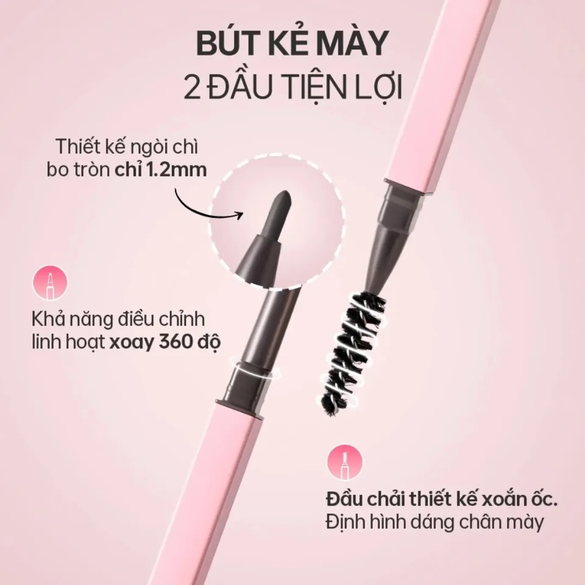 - Thiết kế 2 đầu tiện lợi: 1 đầu chì – 1 đầu cọ chải