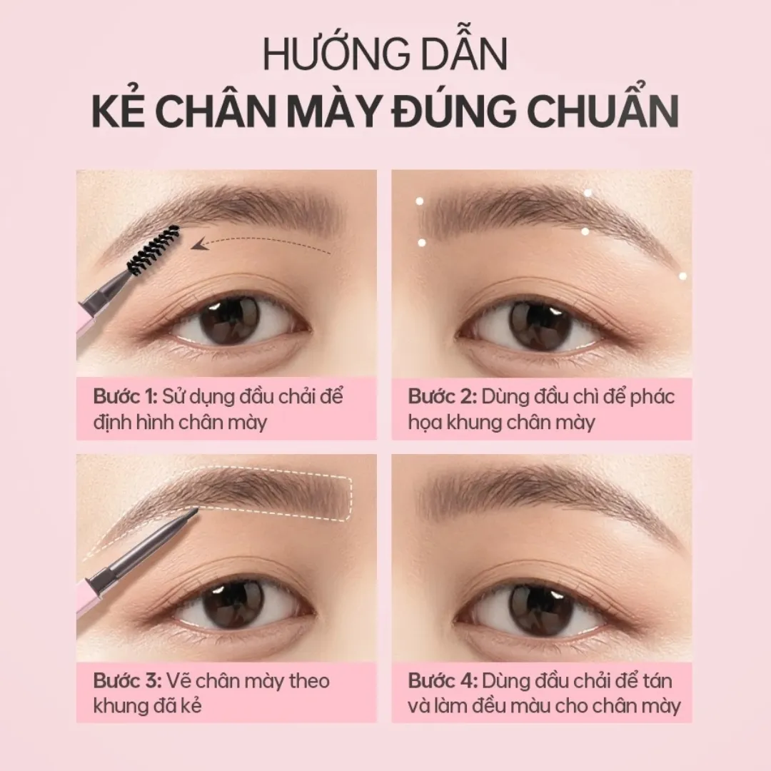 1. Dùng đầu chì để định hình khuôn mày, vẽ theo chiều mọc tự nhiên của lông mày.