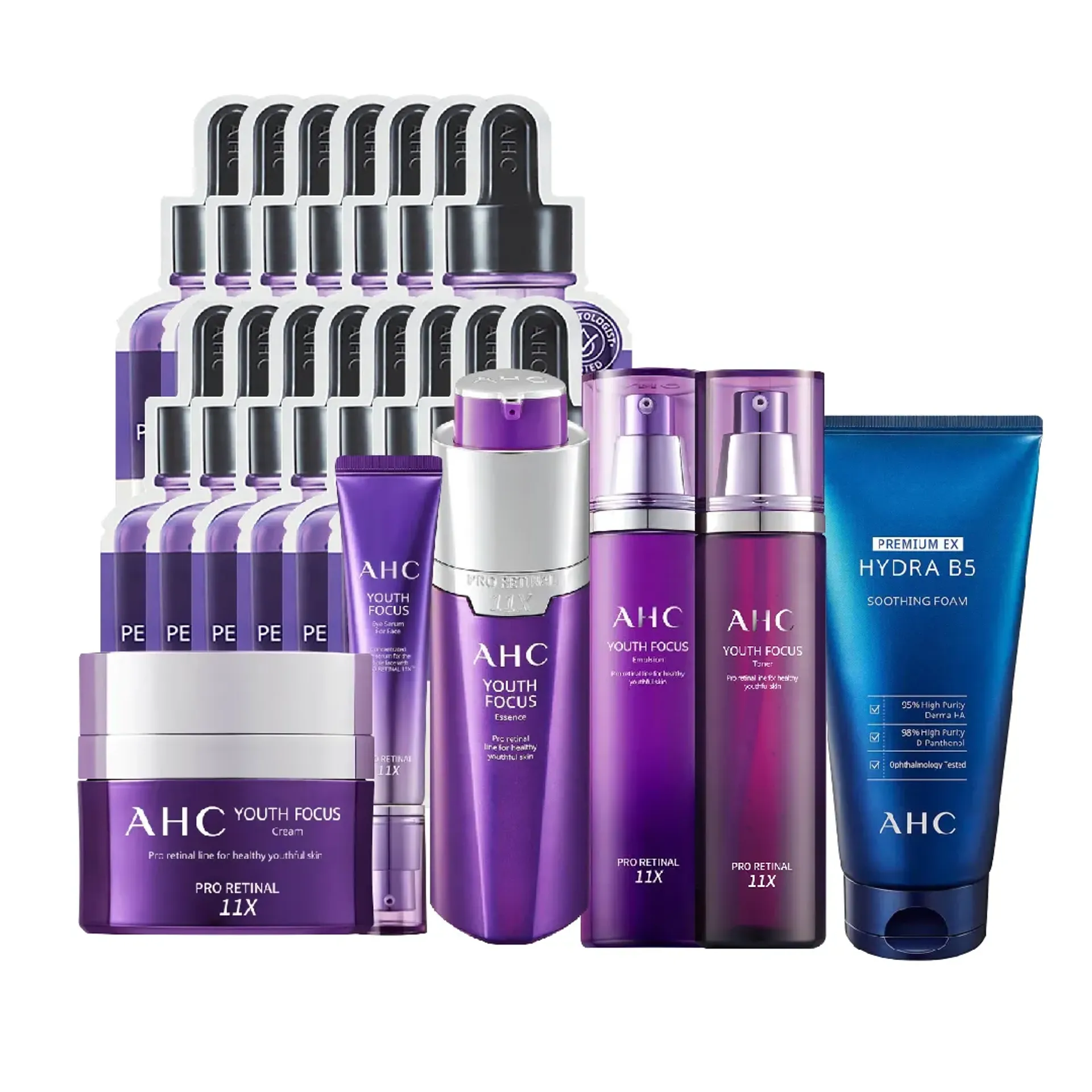 AHC Youth Focus là dòng sản phẩm làm chậm sự oxy hóa cao cấp đến từ Hàn Quốc, với thành phần chính là Retinal kết hợp với công thức Pro Retinal 11X đem lại hiệu quả cải thiện nếp nhăn, giảm đốm nâu cho làn da căng mịn rạng rỡ.