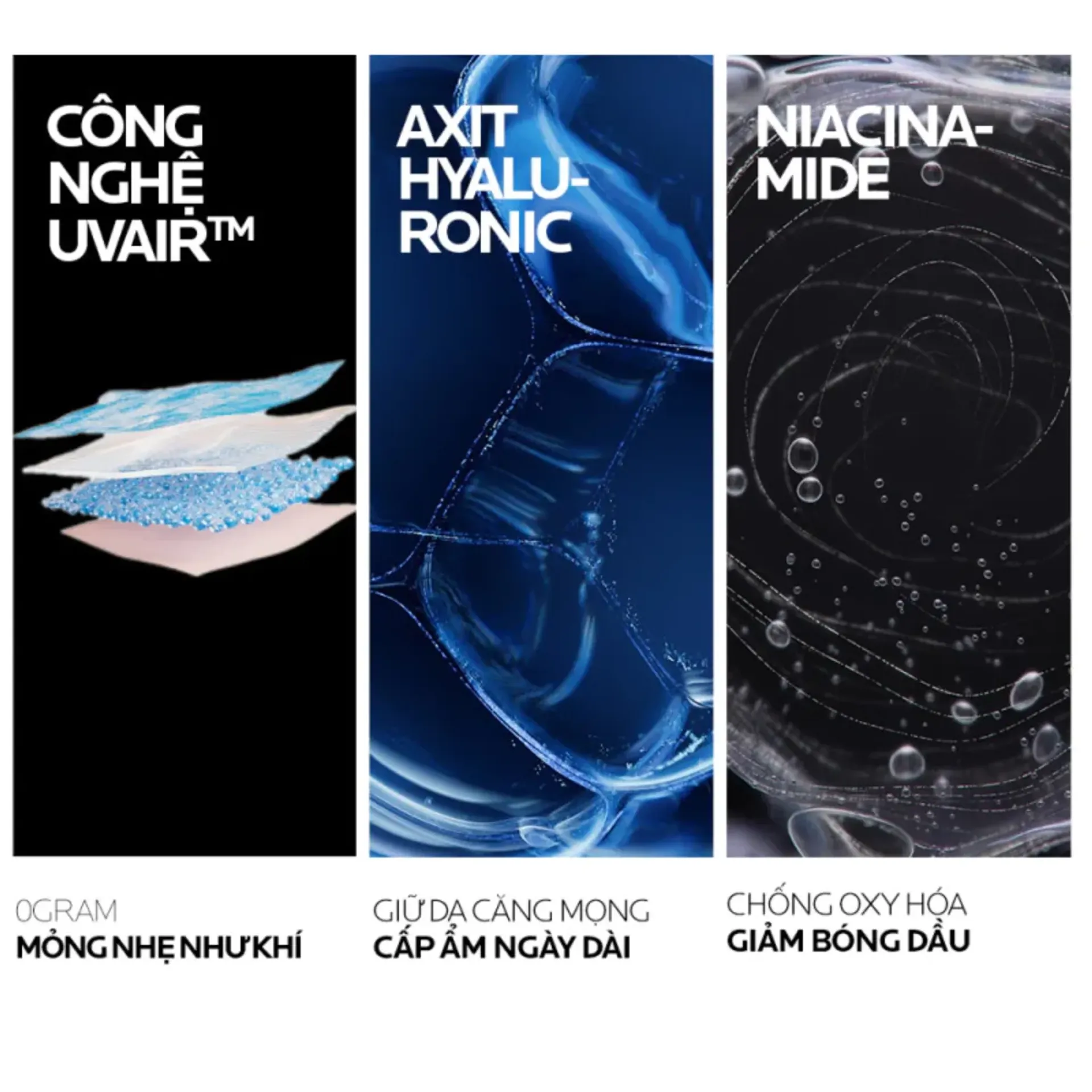 La Roche-Posay Anthelios UVAir SPF50+ là kem chống nắng dạng serum thế hệ mới với kết cấu siêu mỏng nhẹ, ứng dụng Công nghệ 0G độc quyền, mang lại cảm giác “không trọng lượng” trên da. Sản phẩm giúp bảo vệ phổ rộng trước tia UVA & UVB, đồng thời kiềm dầu đến 16 giờ và cấp ẩm suốt 24 giờ, cho làn da luôn khô thoáng, tươi sáng và khỏe mạnh mỗi ngày.
