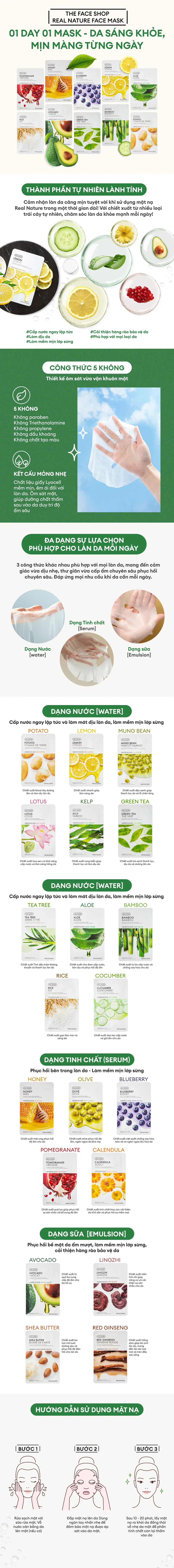5 Mặt Nạ Thanh Lọc Da Ngừa Mụn Từ Trà Xanh THE FACE SHOP Real Nature Green Tea