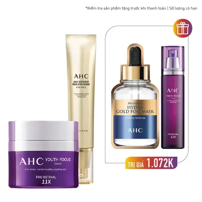 Combo gồm: 01 Kem Dưỡng Mắt AHC AGE DEFENSE REAL EYE CREAM FOR FACE 40ml 01 Kem Dưỡng Làm Chậm Sự Oxy Hóa AHC YOUTH FOCUS CREAM 50ml