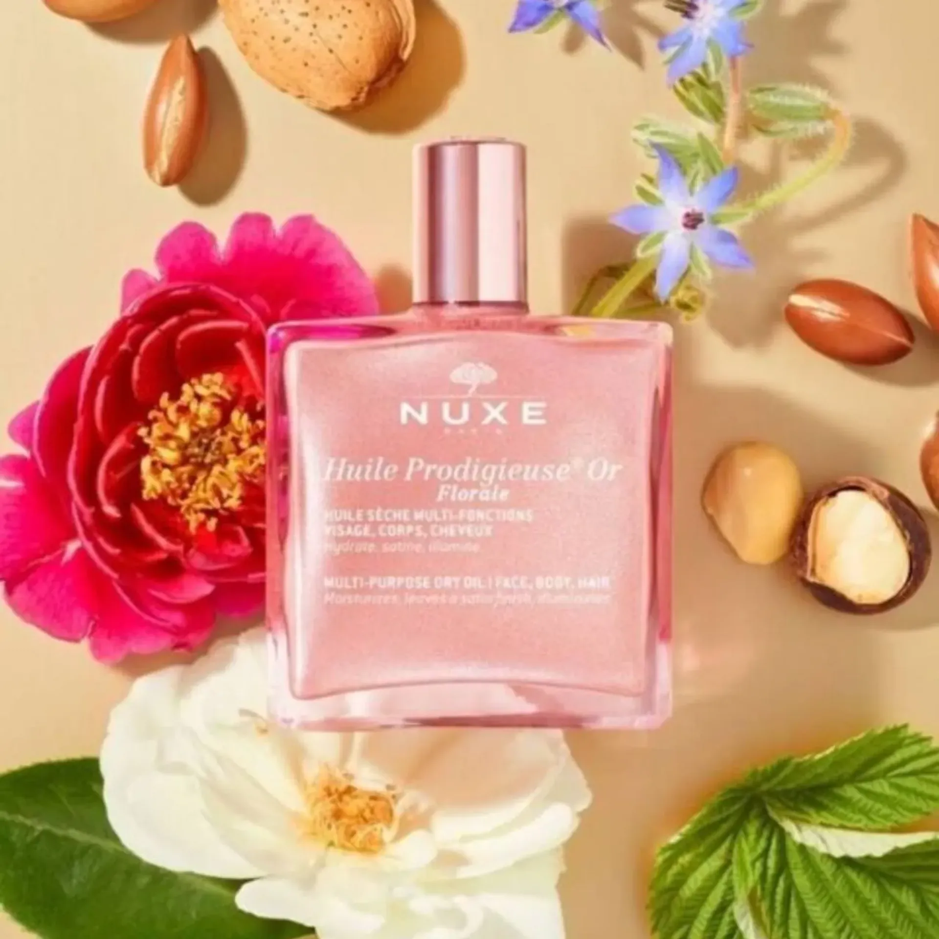 Huile Prodigieuse® Or Florale mang lại trải nghiệm mang tính biểu tượng của 7 loại dầu thực vật quý giá để dưỡng ẩm, tạo cảm giác mịn màng và làm sáng da mặt, cơ thể và tóc chỉ trong một bước. Loại dầu khô có chiết xuất ngọc trai mịn, nguồn gốc từ khoáng chất mang đến ánh sáng vàng hồng óng ánh không thể cưỡng lại.
