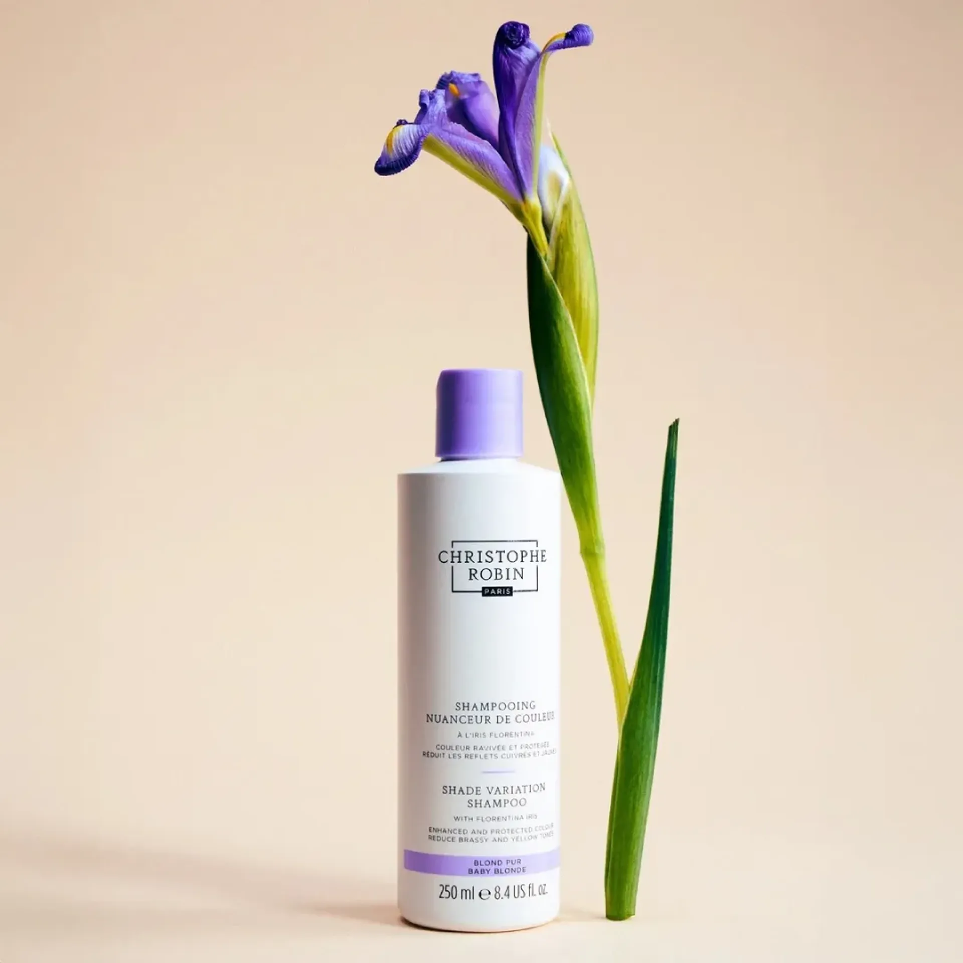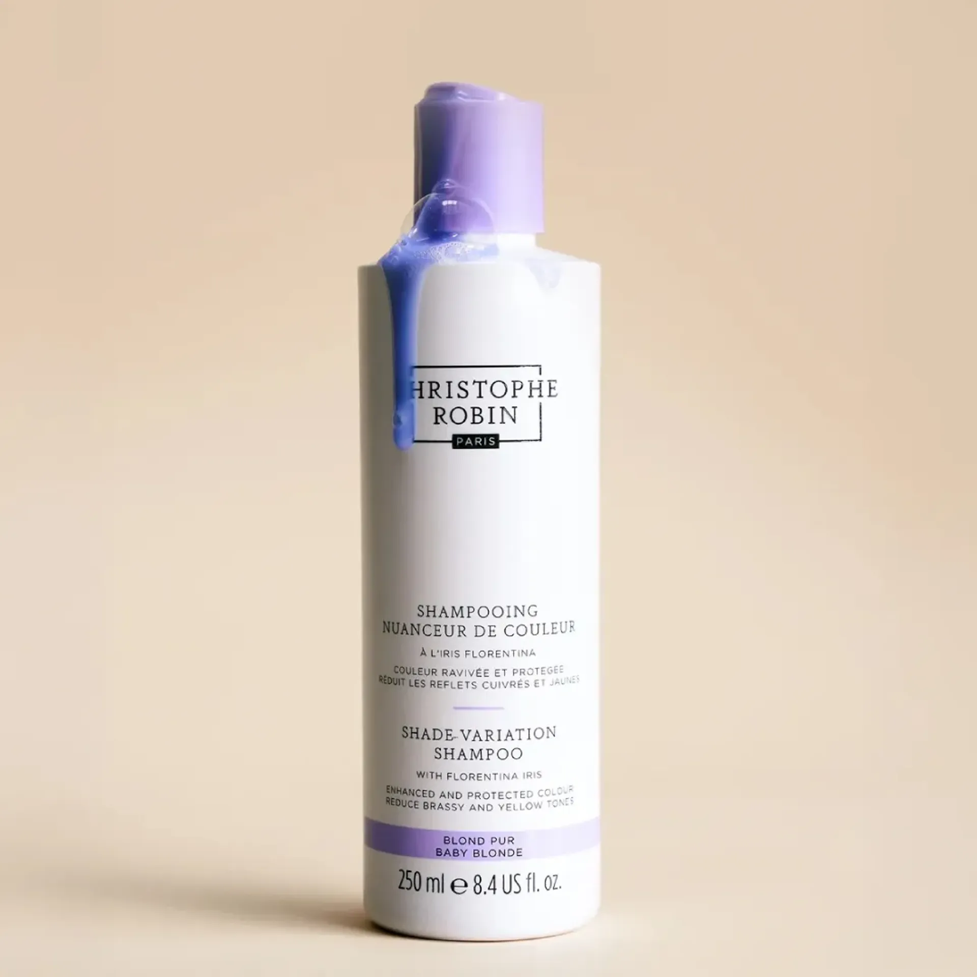 CHRISTOPHE ROBIN Shade Variation Shampoo - Baby Blonde là dầu gội tạo sắc tố dành riêng cho tóc vàng sáng hoặc tóc tẩy, giúp trung hòa sắc vàng đồng, mang lại tông màu vàng sáng tự nhiên, tươi mới như vừa nhuộm. Công thức giàu chiết xuất thực vật và bơ dưỡng ẩm nuôi dưỡng tóc mềm mượt, giảm khô xơ và bảo vệ màu tóc lâu phai.