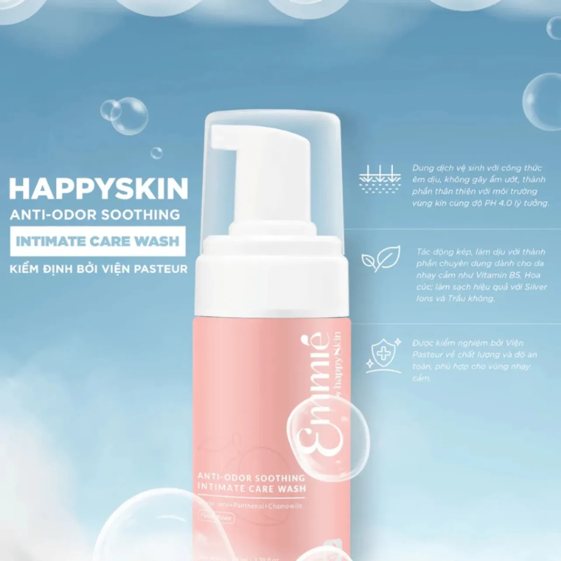 EMMIE Anti-Odor Soothing Intimate Care Wash 100ml là dung dịch vệ sinh phụ nữ được thiết kế dành riêng để chăm sóc vùng da nhạy cảm một cách nhẹ nhàng nhưng hiệu quả. Với hương thơm dịu nhẹ, sản phẩm không chỉ giúp làm sạch mà còn mang lại cảm giác dễ chịu, tươi mát suốt cả ngày. Công thức đặc biệt chú trọng cân bằng pH tự nhiên, hỗ trợ ngăn ngừa mùi khó chịu và dưỡng ẩm cho vùng da nhạy cảm.
