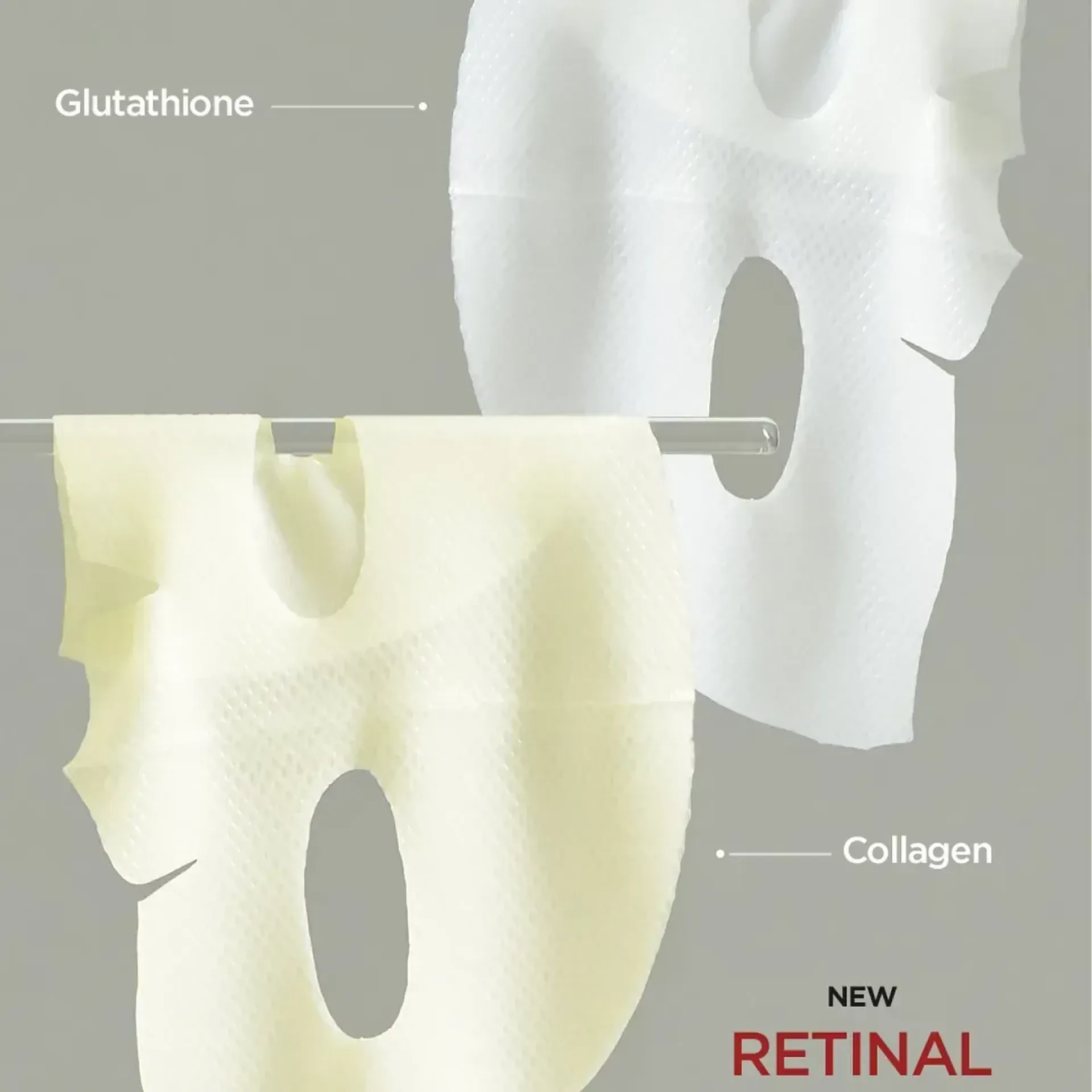 - Mặt nạ Retinal Glutathione được làm từ chất liệu hydrogel màu trắng, giàu dưỡng chất giúp chăm sóc trắng da chuyên sâu cho làn da xỉn màu và tối màu.