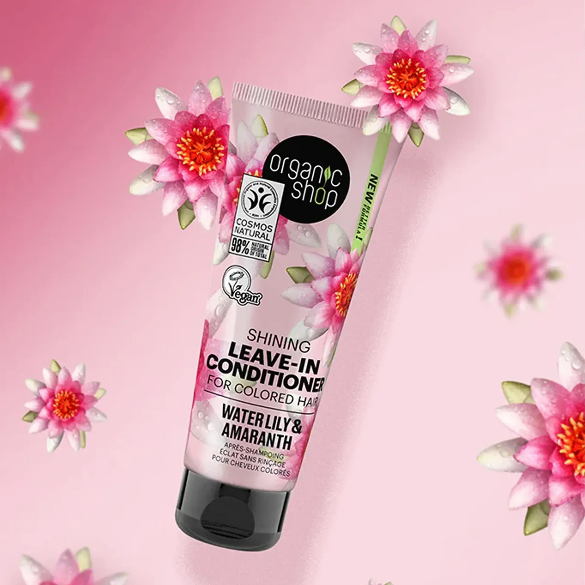 Uốn, nhuộm, duỗi và sử dụng hóa chất nhiều khiến mái tóc dần mất đi sức sống, khô xơ trầm trọng hơn. Organic Shop Water Lily & Amaranth Shining Leave-In Conditioner được ví như “vị cứu tinh” hô biến mái tóc hư tổn trở nên bồng bềnh, óng ả bất chấp tác nhân gây hại.