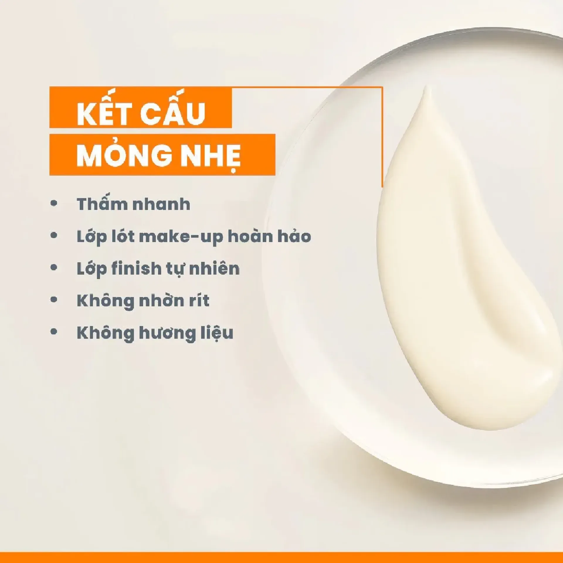 - Kết cấu mỏng nhẹ, thấm nhanh, không nhờn rít, không để lại vệt trắng.
