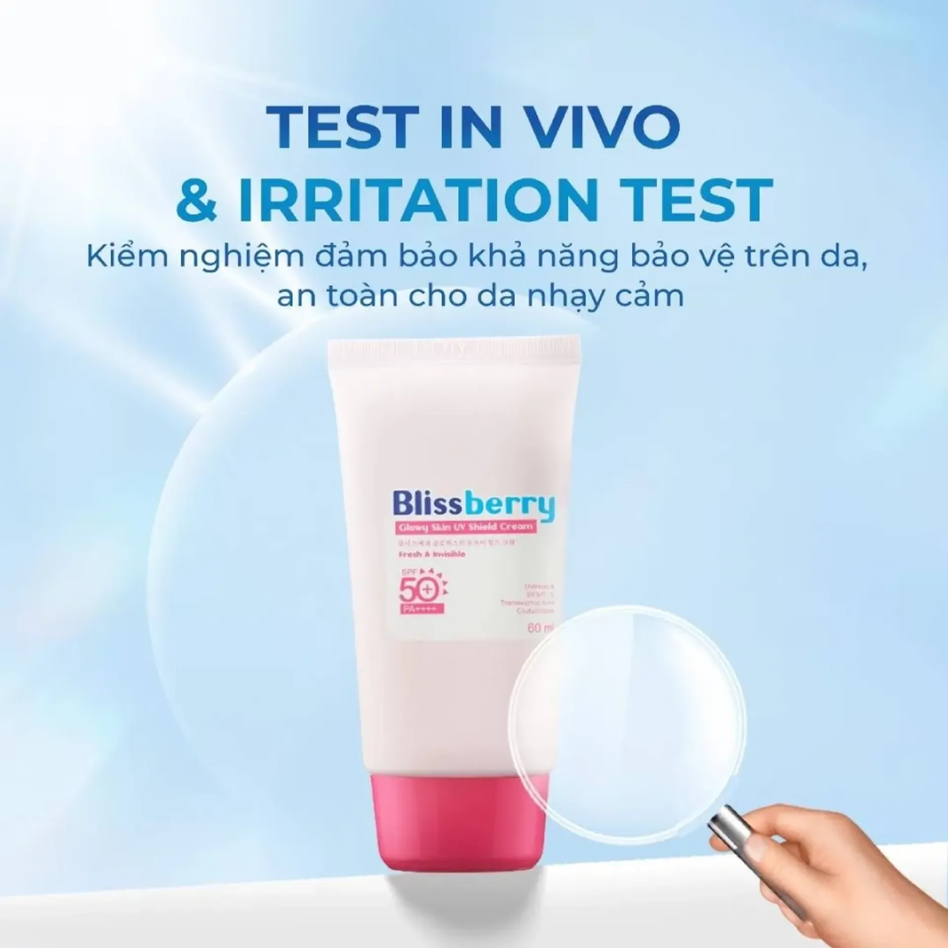 Công dụng: Blissberry GlowySkin UV Shield Cream là kem chống nắng lai (Hybrid) với chỉ số SPF50+ PA++++, bảo vệ da hiệu quả khỏi tia UVA, UVB, ánh sáng xanh và ô nhiễm môi trường. Đồng thời, sản phẩm còn dưỡng sáng da, giữ ẩm và giảm thiểu tác hại từ môi trường nhờ vào các hoạt chất thiên nhiên và công nghệ ngừa oxy hóa hiệu quả.