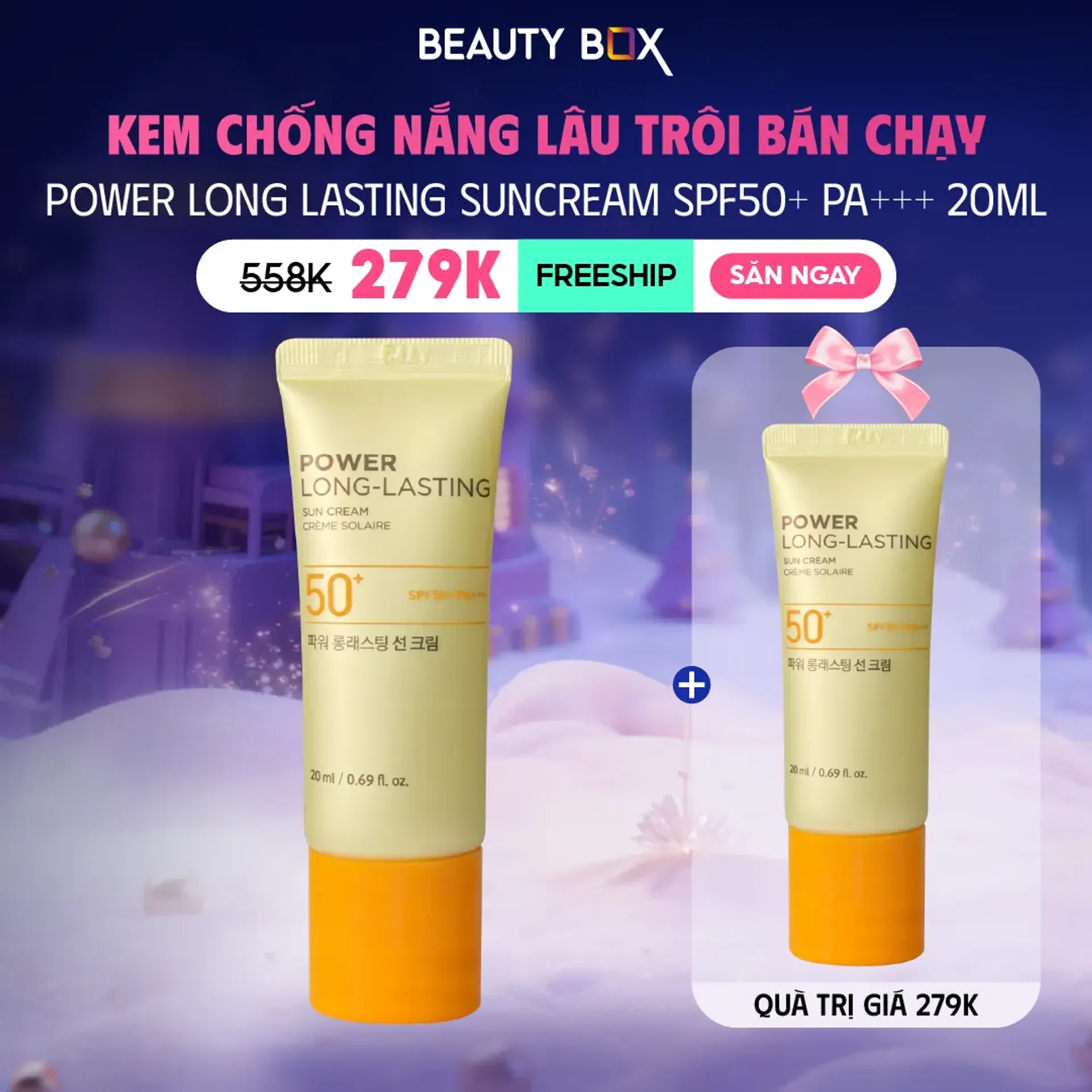 Natural sun ECO power long-lasting sun cream SPF50+ PA+++ là kem chống nắng vật lý lai hóa học đa năng được yêu thích nhất tại The Face Shop. Sản phẩm vừa chống nắng bảo vệ da tối đa nhờ chỉ số SPF50+, vừa có thể sử dụng làm kem lót trang điểm hoàn hảo.Hơn thế, kem chống nắng natural sun có khả năng kháng nước, dầu nhờn. Ngăn được cả 2 tia UVA và UVB, giảm thiểu tình trạng sạm da. Kem có kết cấu nhẹ, màu da tự nhiên, thoa lên da thẩm thấu nhanh không gây bết dính. Đồng thời giúp điều chỉnh sắc màu da mịn tự nhiên.