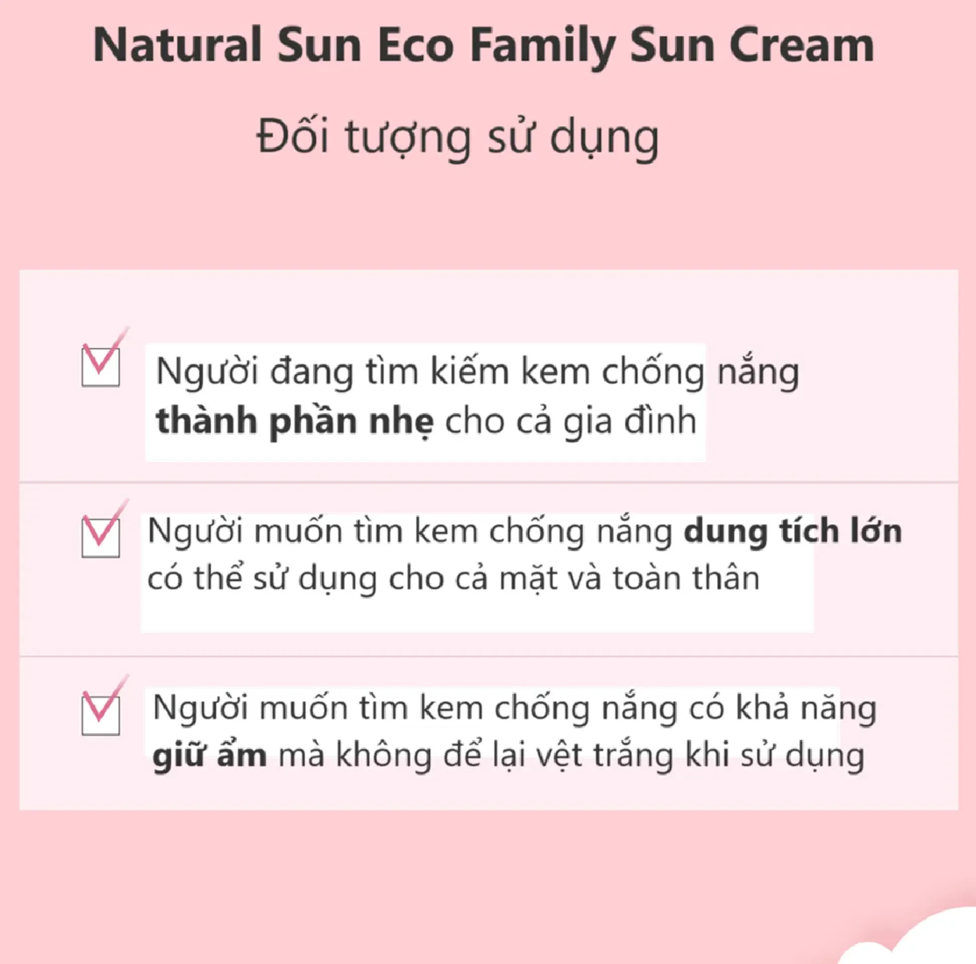 - Chứa thành phần thiên nhiên, bổ sung ẩm và hạn chế khô da khi dưới nắng