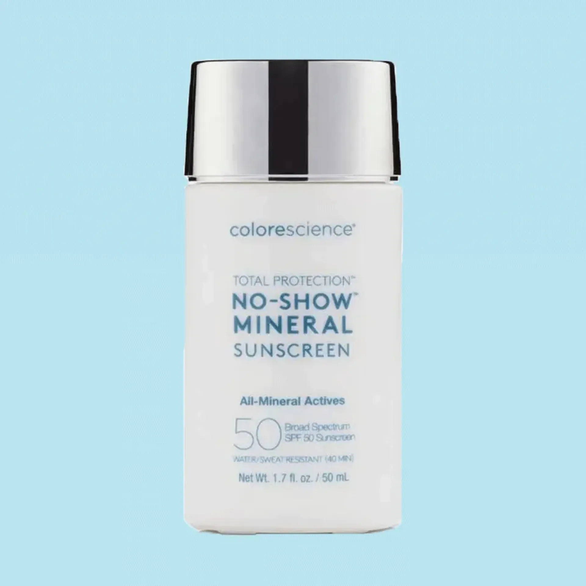 Colorescience Total Protection No-Show Mineral Sunscreen SPF 50 là kem chống nắng khoáng chất “trong suốt”, thiết kế để mang lại lớp phủ mỏng nhẹ, không màu và không để lại vệt trắng. Công thức sử dụng kẽm oxide 10% (non-nano) kết hợp với công nghệ EnviroScreen®, giúp bảo vệ da khỏi tia UVA/UVB, ánh sáng xanh, ô nhiễm và bức xạ hồng ngoại mà vẫn duy trì cảm giác mềm mượt, nhẹ như không.