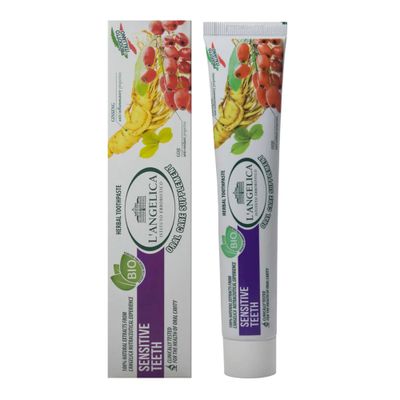 Kem đánh răng thảo dược L'Angelica Sensitive Teeth ứng dụng công nghệ Oral Active và Zinc PCA giúp ngừa các bệnh răng miệng. Các đặc tính giảm viêm và làm chậm sự oxy hóa tự nhiên của nhân sâm và quả goji kết hợp cùng chiết xuất từ nutraceutical bảo vệ răng nhạy cảm khỏi các tình trạng ê buốt khó chịu.
