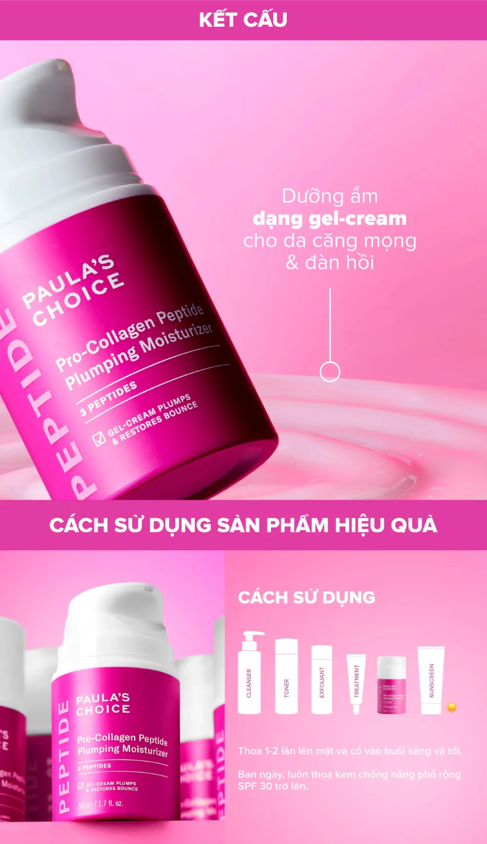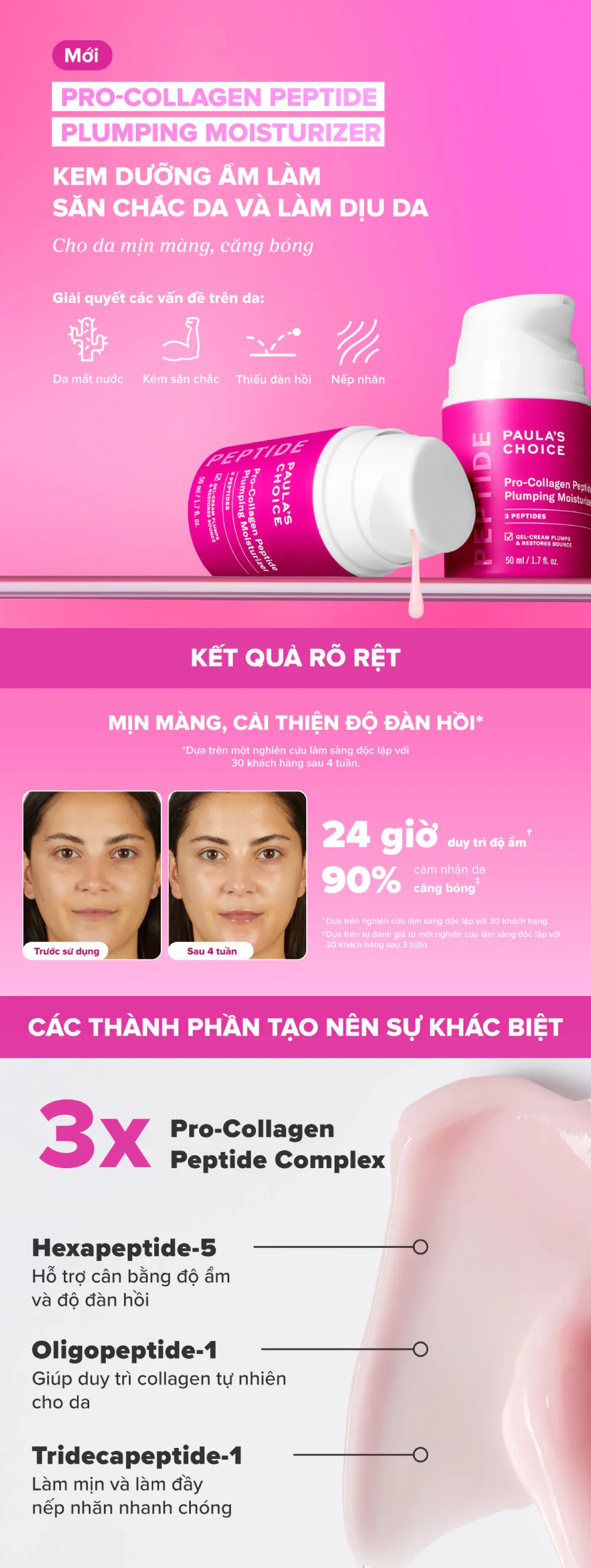Điểm nổi bật của kem dưỡng Paula's Choice Pro-Collagen Peptide Plumping Moisturizer