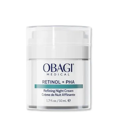 Obagi Medical Retinol + PHA Refining Night Cream là dòng kem dưỡng tái tạo da ban đêm cao cấp kết hợp giữa Retinol tinh khiết và PHA (Polyhydroxy Acid) – công thức tiên tiến giúp chống lão hóa, cải thiện kết cấu da và làm sáng mịn làn da rõ rệt chỉ sau thời gian ngắn sử dụng. Với chất kem mịn nhẹ, dễ thẩm thấu, sản phẩm mang lại cảm giác êm dịu, không gây kích ứng, phù hợp cả với làn da nhạy cảm.