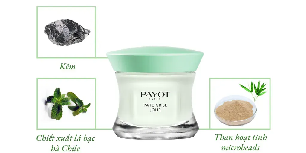 Công dụng: Kem ngày Payot Day Care Mattifying & Spot Treatment dưỡng da kiềm dầu với chiết xuất từ kẽm, cây gai dầu, lá bạc hà Chilien và bột tre sẽ bảo vệ da khỏi bụi bẩn, ô nhiễm, giúp cấp ẩm và xóa mờ vết thâm hiệu quả. Đồng thời,kem dưỡng cũng có thể sử dụng thay kem lót trước khi trang điểm.