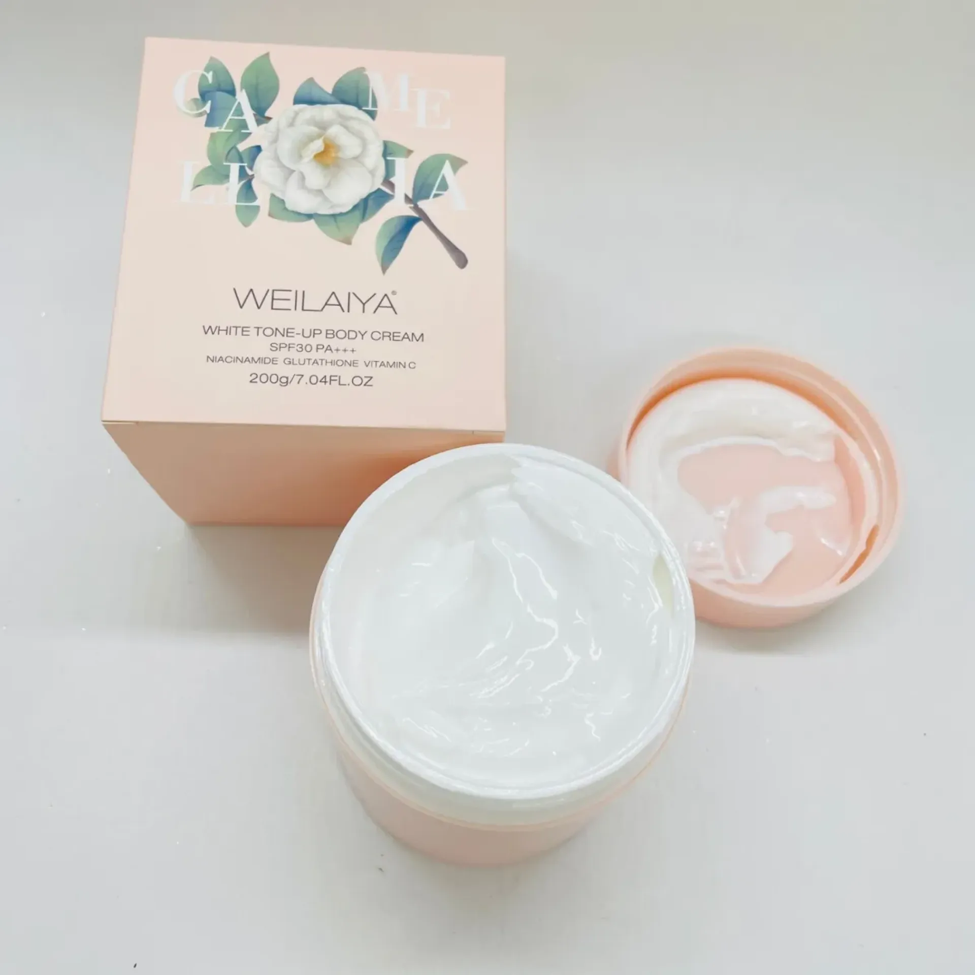 Làm sạch da bằng sữa tắm hoa trà Weilaiya. Lau khô nhẹ cơ thể sau khi tắm. Thoa đều kem dưỡng trắng toàn thân, vỗ nhẹ để dưỡng chất thẩm thấu sâu vào da.