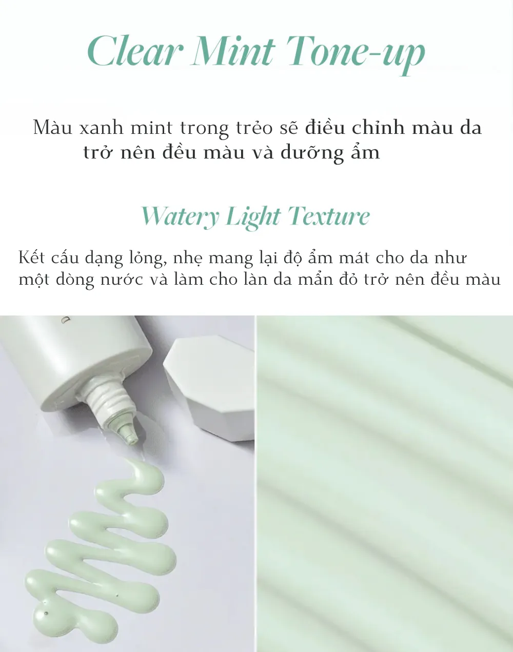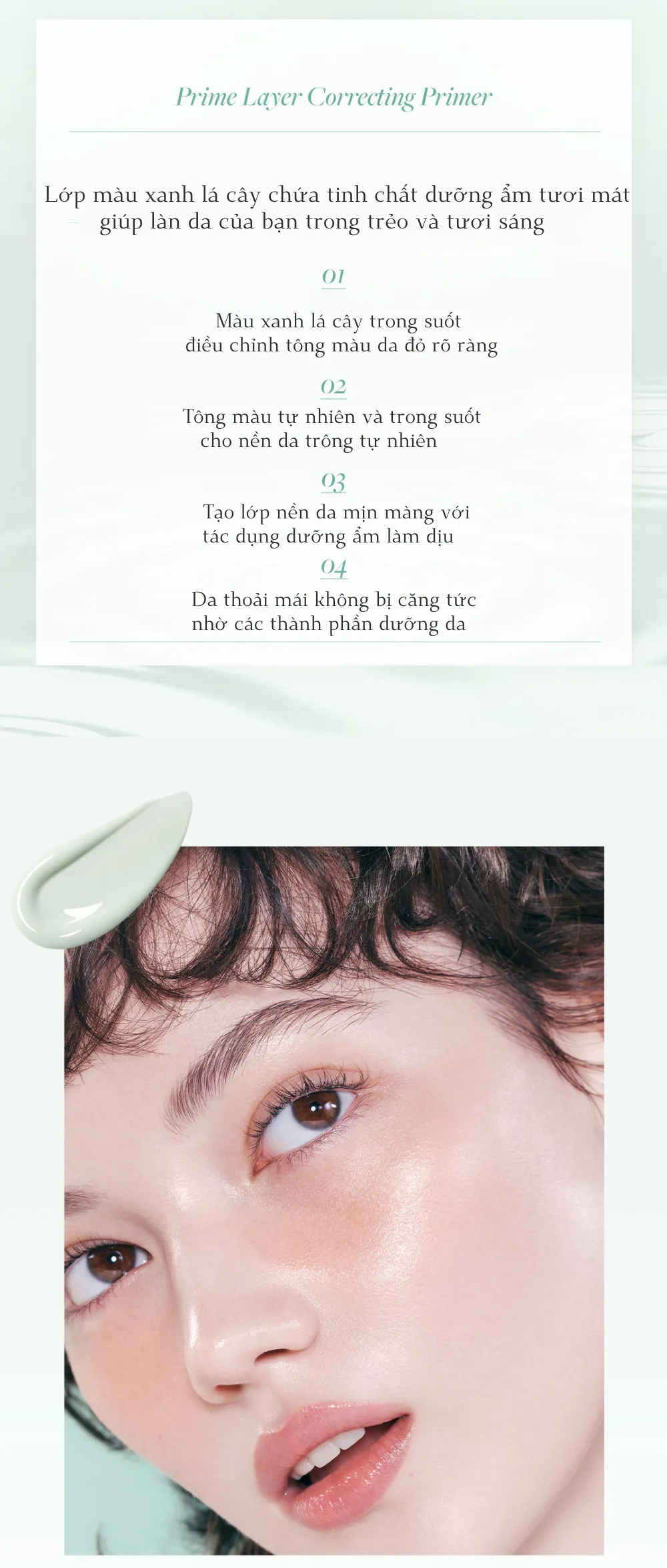 - Kết cấu mỏng nhẹ: không gây cảm giác bết dính hay nặng mặt, dễ dàng thẩm thấu vào da, không để lại vệt trắng.