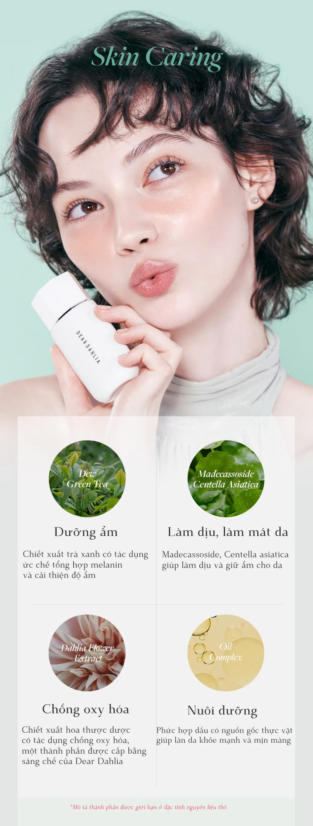 - Chiết xuất hoa thược dược: công thức sáng chế độc quyền của Dear Dahlia giàu chất làm chậm sự oxy hóa, làm khỏe và trẻ hóa da