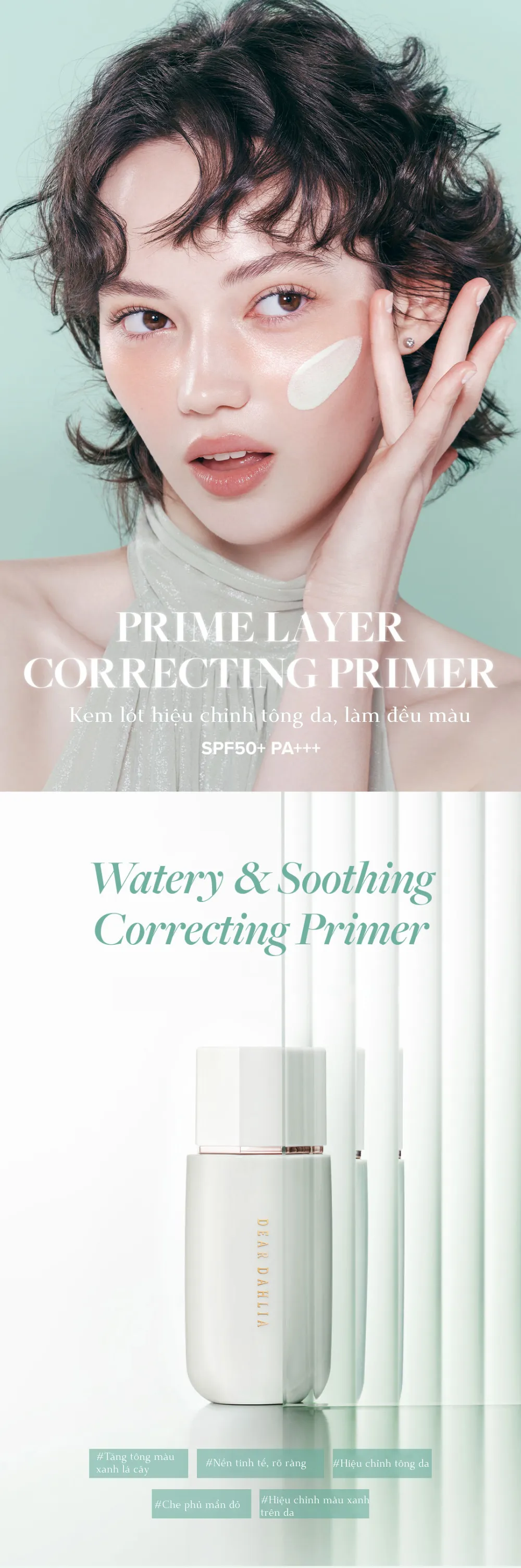 Kem lót Dear Dahlia Prime Layer Correcting Primer SPF50+ PA+++ nổi bật với những tính năng chăm sóc da, bảo vệ da khỏi tác hại của ánh nắng mặt trời, đồng thời giúp lớp nền trang điểm mịn màng và lâu trôi.