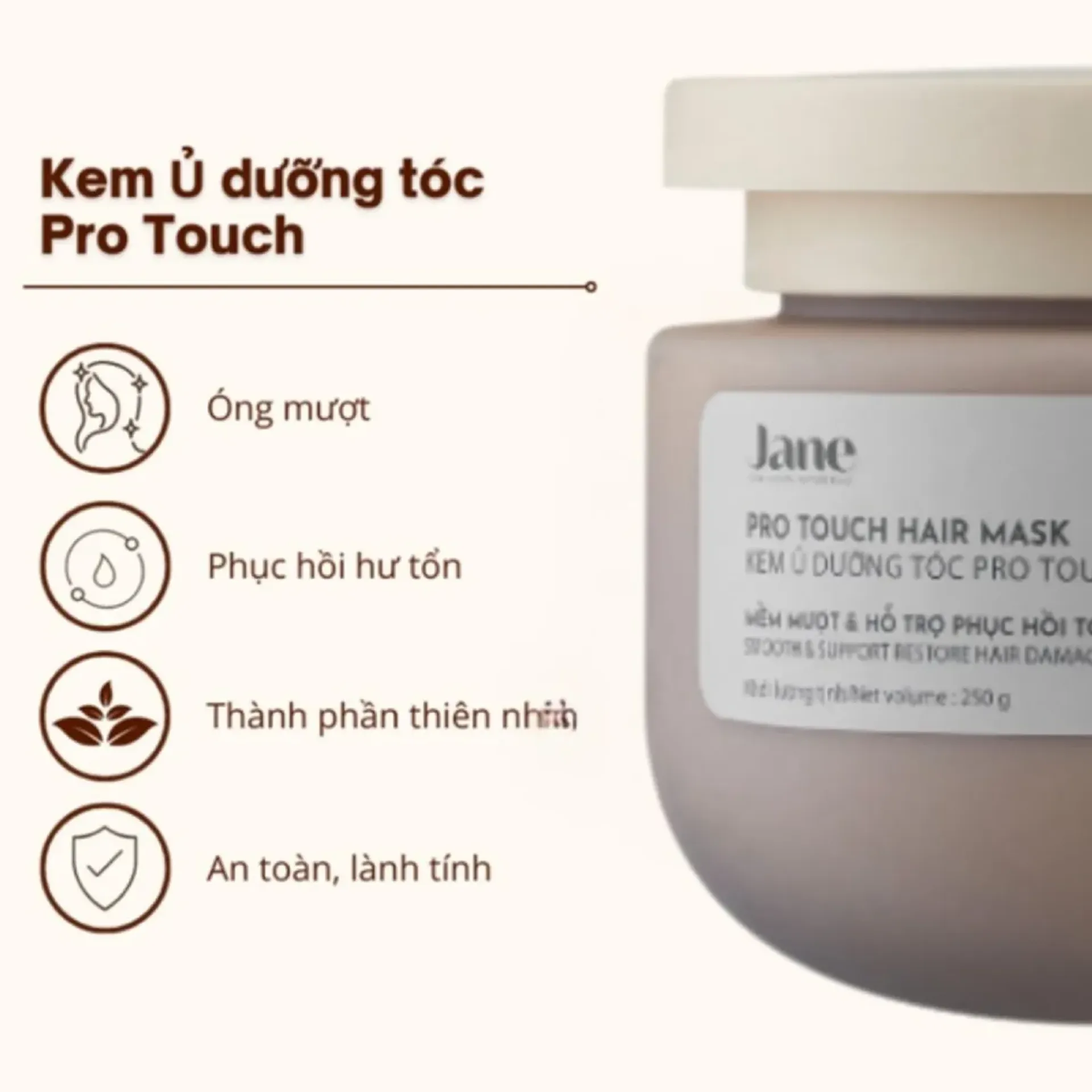 Jane Pro Touch là dòng chăm sóc tóc chuyên sâu được phát triển dành riêng cho mái tóc khô xơ, hư tổn. Với sự kết hợp giữa chiết xuất thiên nhiên quý giá và công nghệ dưỡng tóc hiện đại, Jane Pro Touch Hair Mask giúp nuôi dưỡng toàn diện, phục hồi từ bên trong và bảo vệ tóc trước những tác nhân gây hại từ môi trường.