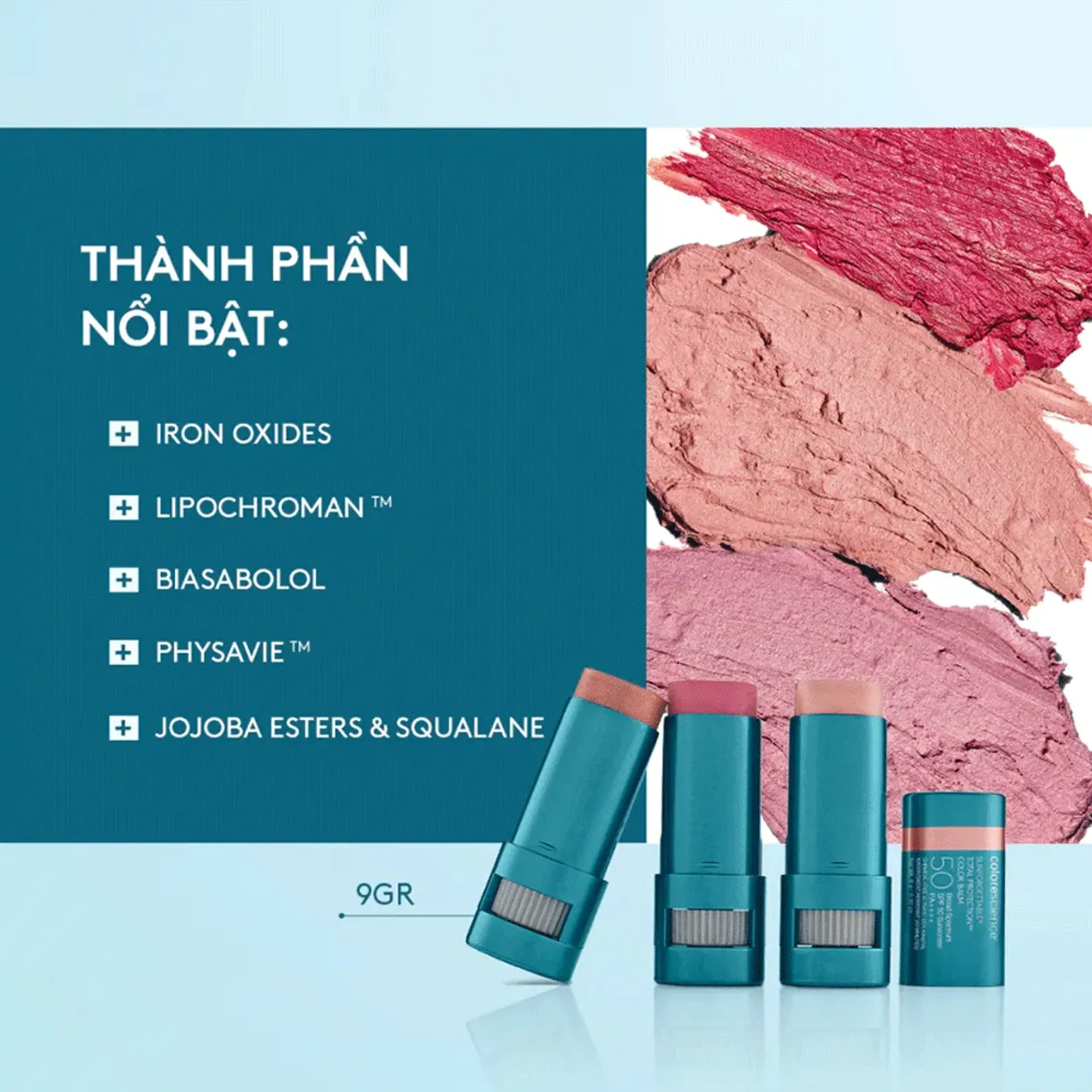 - Bảo vệ da với chống nắng khoáng phổ rộng (SPF 50) chống tia UVA/UVB.