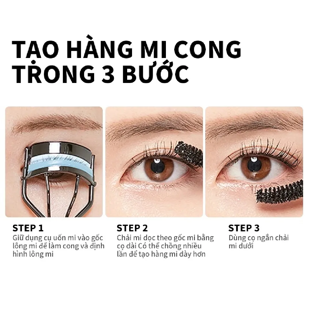 - Cọ chuốt cong thông minh giúp tơi mi, không vón cục.