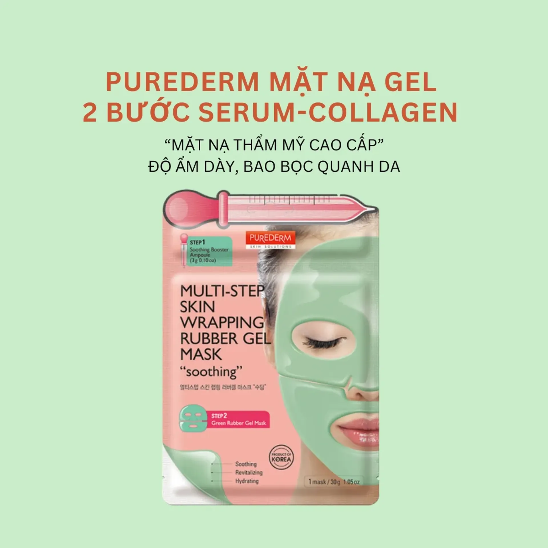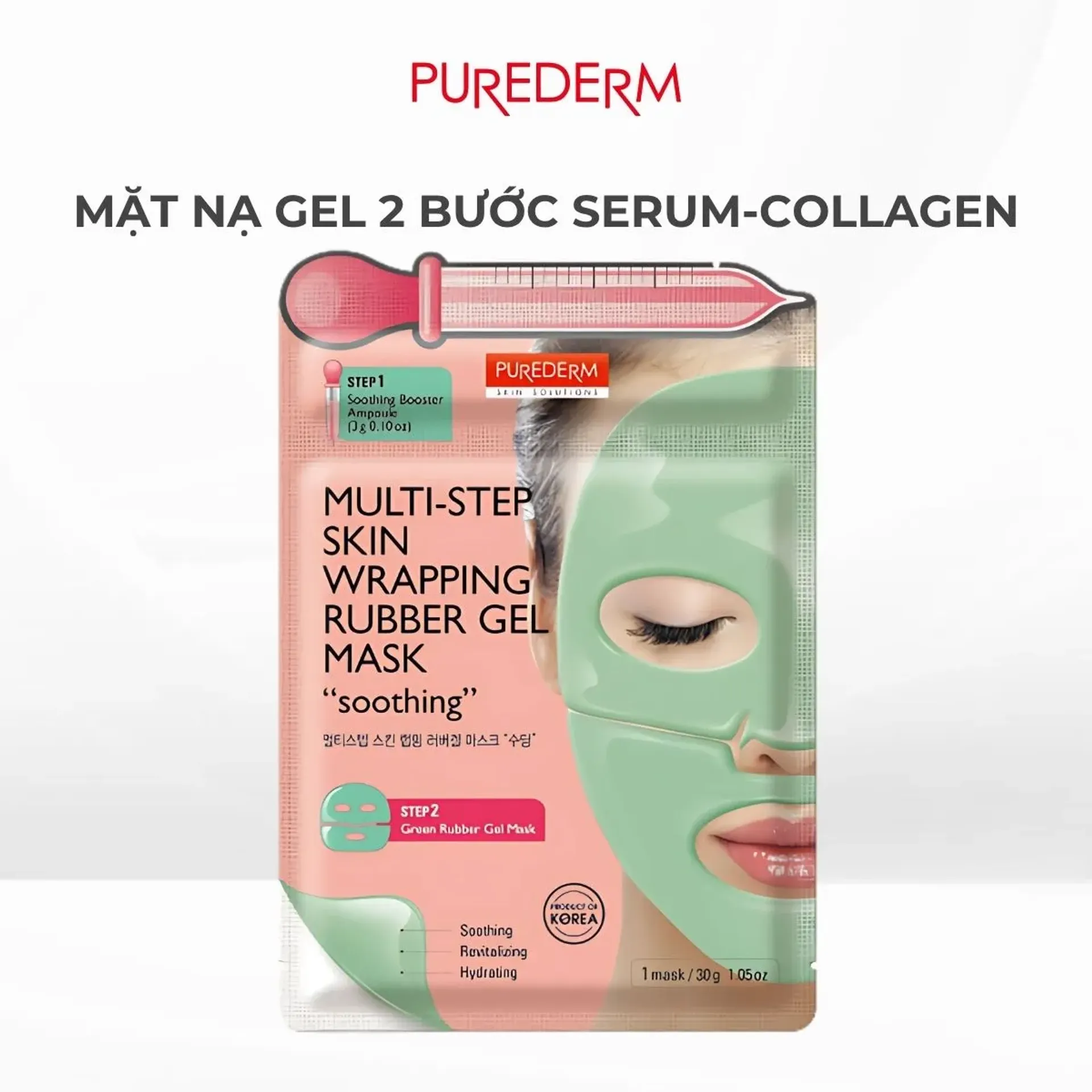 Công dụng: Mặt nạ gel 2 bước tinh chất làm sáng & mềm mịn da Purederm là giải pháp dưỡng da hoàn chỉnh dành cho làn da xỉn màu, khô ráp, thiếu sức sống. Thiết kế thông minh với hai bước liên tiếp: Step 1 – Ampoule (tinh chất cô đặc) và Step 2 – Hydrogel mask (mặt nạ dạng gel mát lạnh), giúp dưỡng chất được hấp thụ tối ưu, mang lại hiệu quả nhanh chóng như một liệu trình chăm sóc da chuyên sâu tại spa.