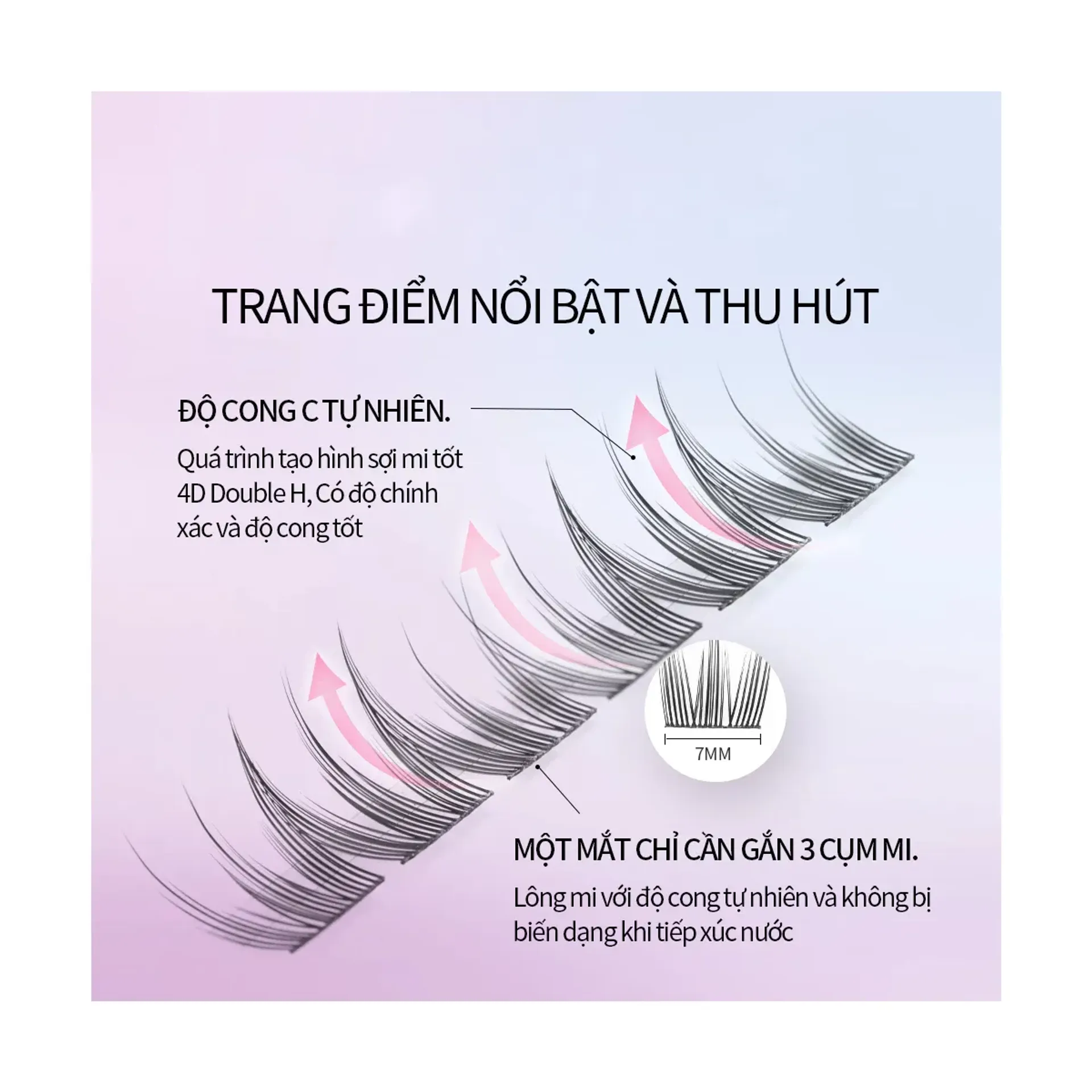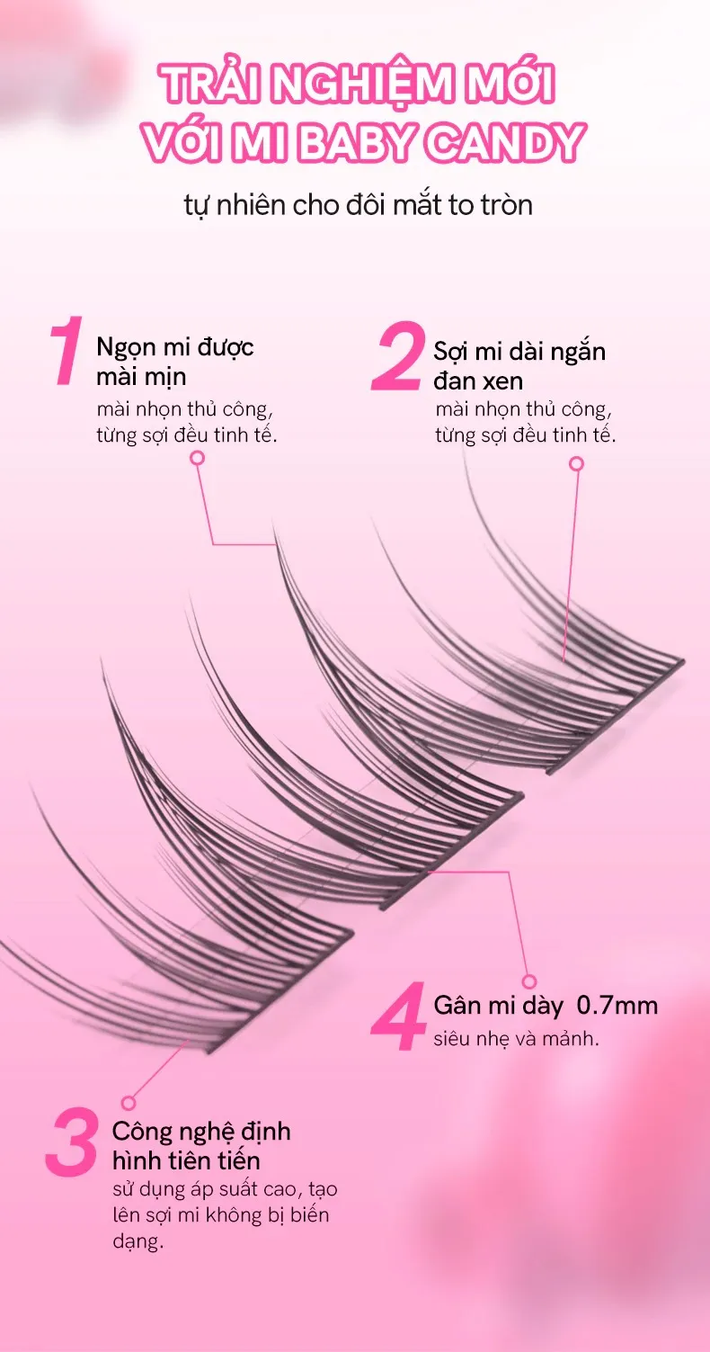 - Tăng cường hiệu ứng mắt to tròn: Nhờ thiết kế tỉ mỉ từng cụm mi và độ cong nhẹ nhàng, mi giúp tạo cảm giác đôi mắt lớn và sáng hơn – tựa như nhân vật bước ra từ truyện tranh.