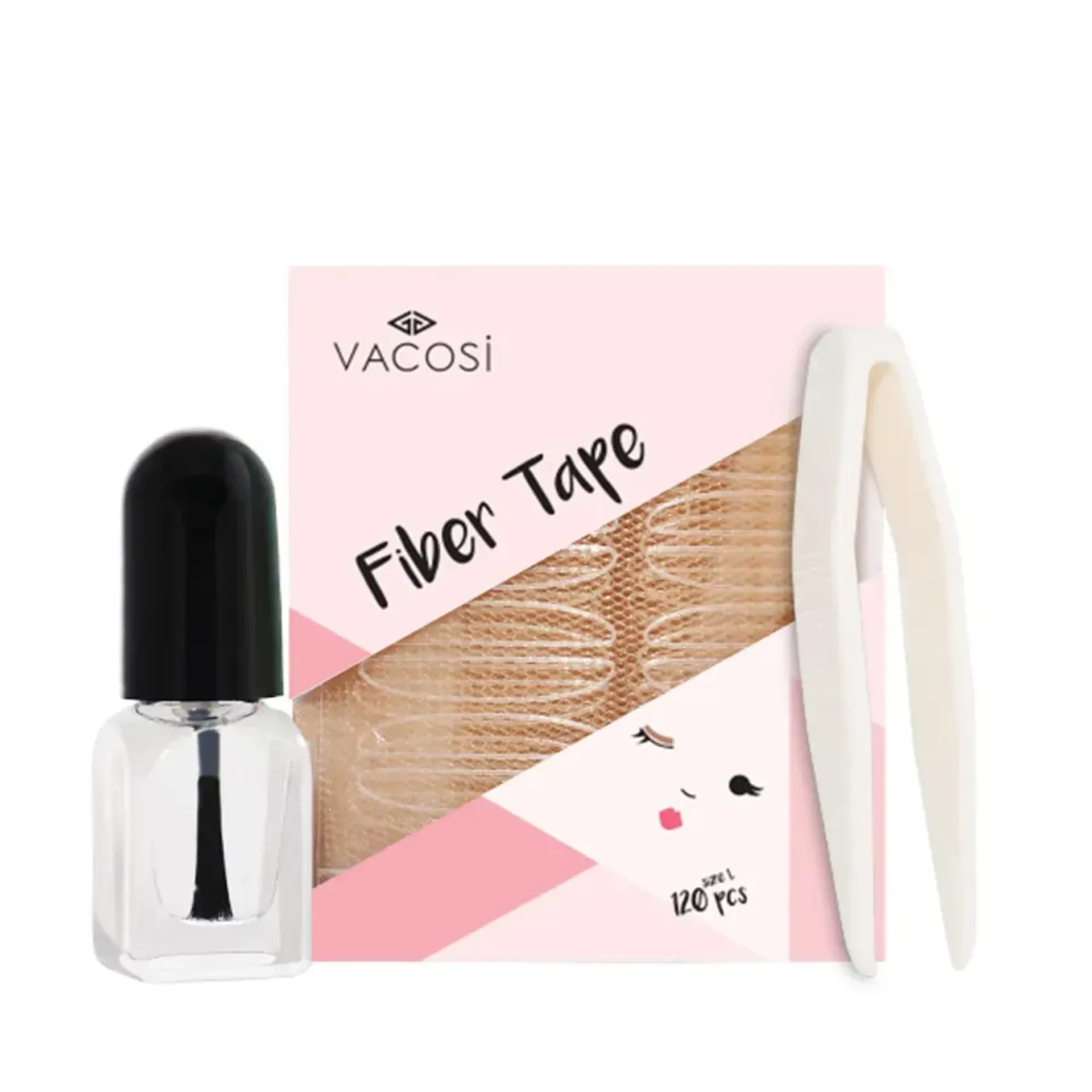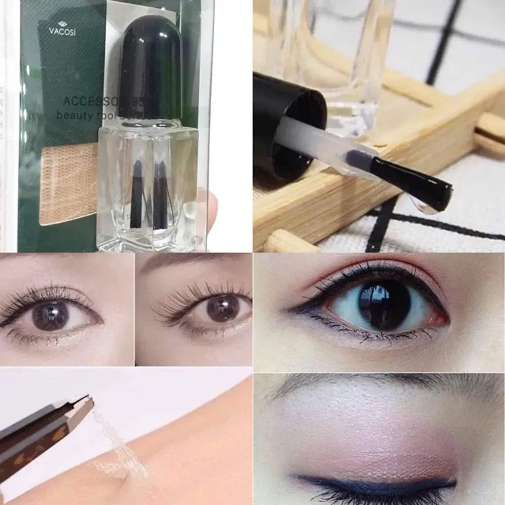 Sản phẩm bao gồm: 120 miếng dán mí, một nhíp gắp mí và một gel dán mí.