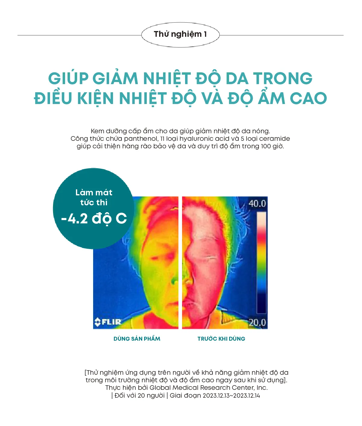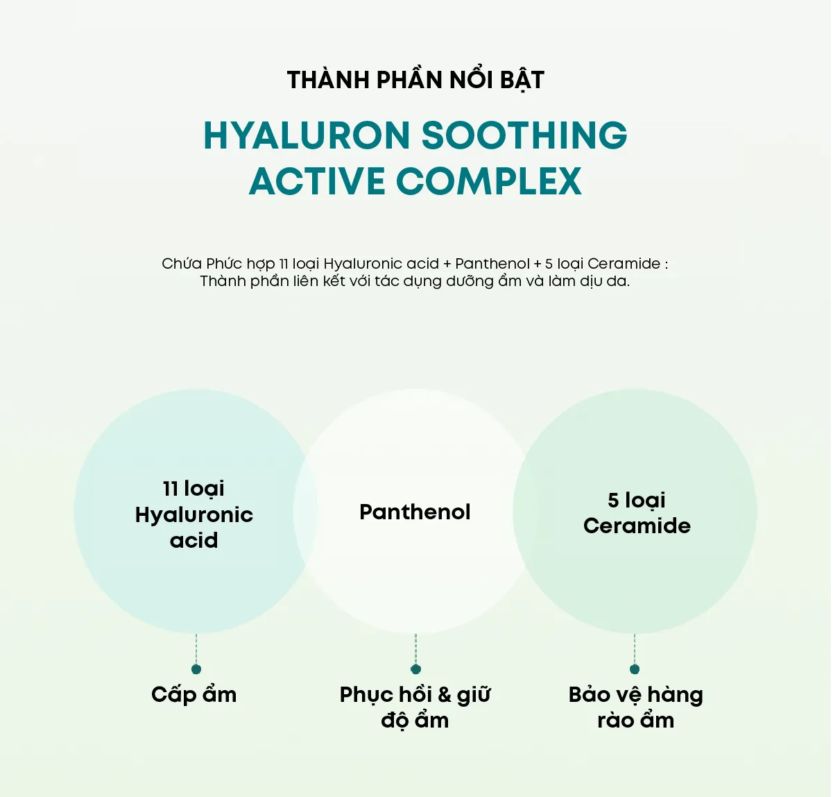 Phức hợp 11 loại axit hyaluronic phức hợp + Panthenol + 5 loại ceramide đem lại hiệu quả cấp ẩm mạnh mẽ, làm dịu da tức thì