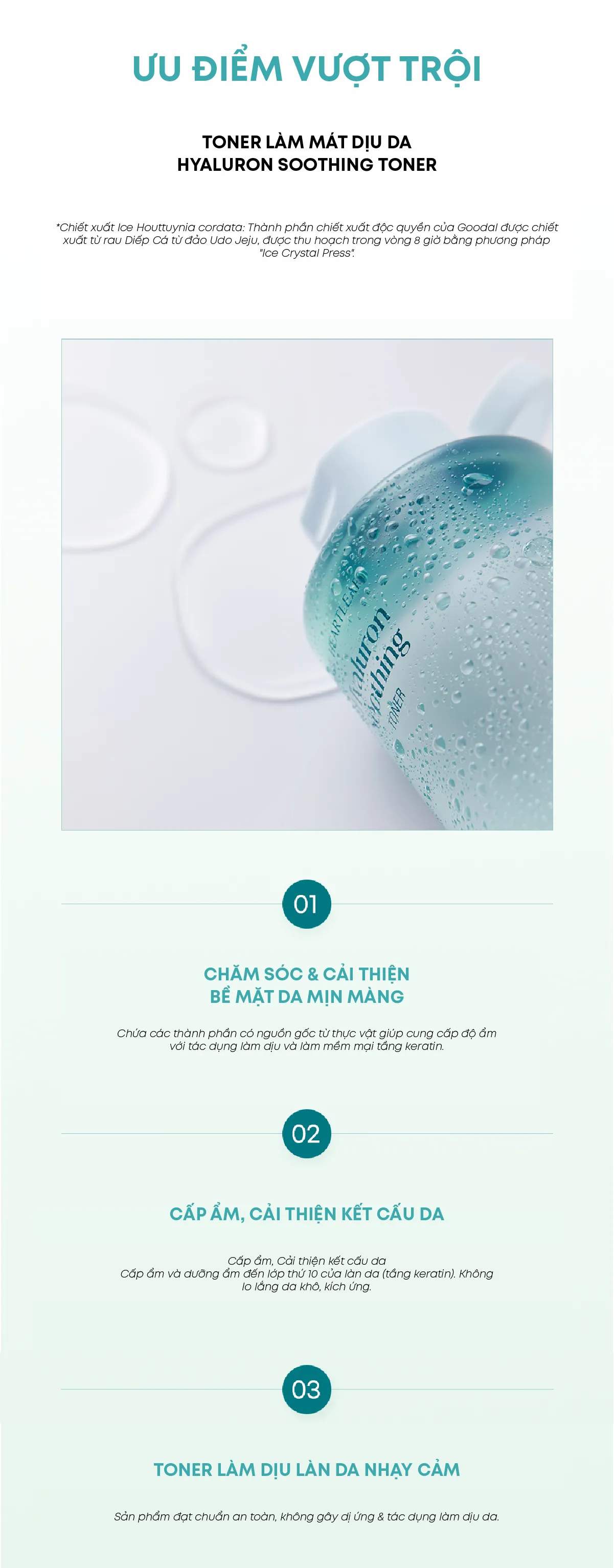 Điểm nổi bật của nước cân bằng Goodal Houttuynia Cordata Hyaluron Soothing Toner