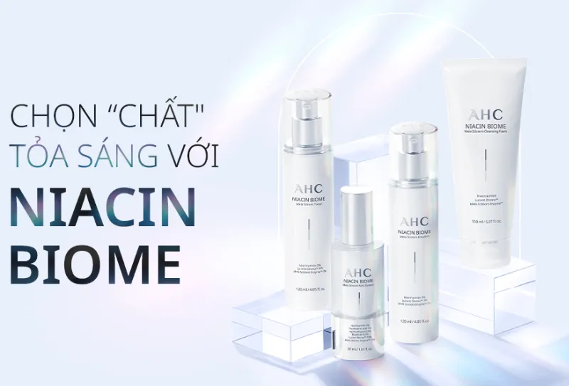 Niacin Biome là dòng dưỡng sáng da chuyên sâu của AHC, sử dụng công thức độc quyền Niacin Biome Complex - “công nghệ lớp cắt vàng 3 tác động” với các thành phần bật về công dụng làm trắng sáng da. Sản phẩm cao cấp dòng Niacin Biome sẽ tập trung cải thiện & ngừa các vấn đề ở da như da kém đều màu, thâm nám, tàn nhang trong 7 ngày.