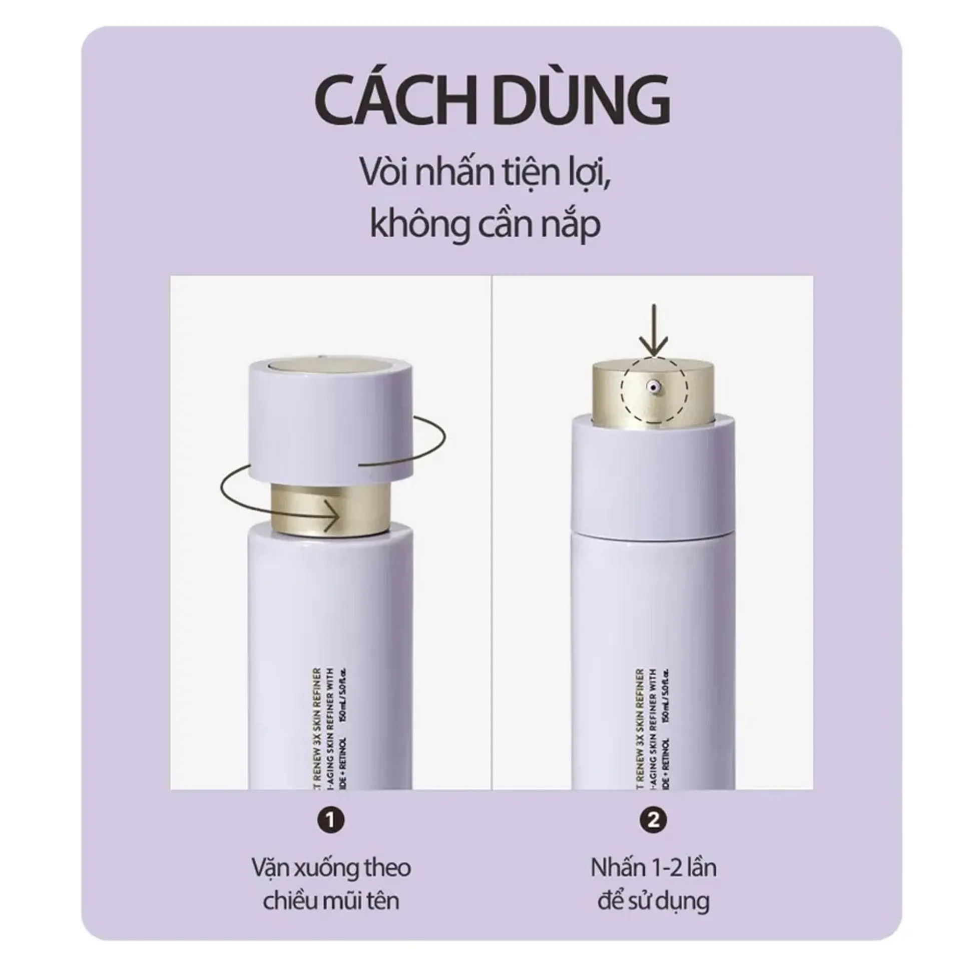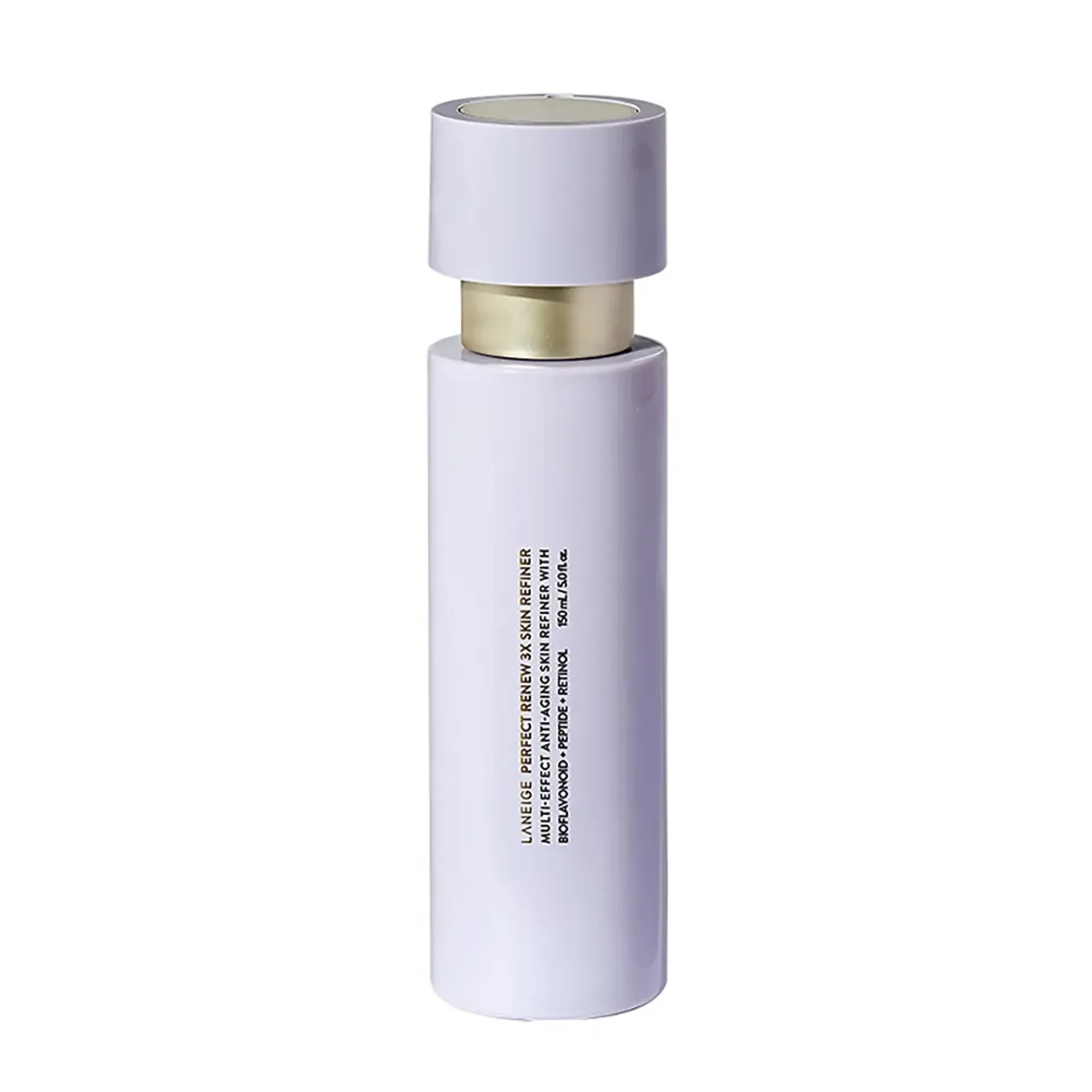 Nước cân bằng Laneige Perfect Renew 3x Skin Refiner là giải pháp làm chậm sự oxy hóa 3 trong 1 giúp giảm nếp nhăn, phục hồi da bị tổn thương và tăng cường độ săn chắc cho làn da. Toner được sản xuất với công nghệ 3XTM hiện đại, vượt trội gồm Retinol, Peptide, Re.D Flavonoid hỗ trợ làm phẳng nếp nhăn, giảm thiểu da chùng nhão, chảy xệ đặc biệt là ở đuôi mắt, vùng da ở cánh mũi. Ngoài ra, sản phẩm còn giúp sửa chữa hàng rào ẩm bị tổn thương, làm dịu vùng da bị cháy nắng, se khít lỗ chân lông đến đến 20%.