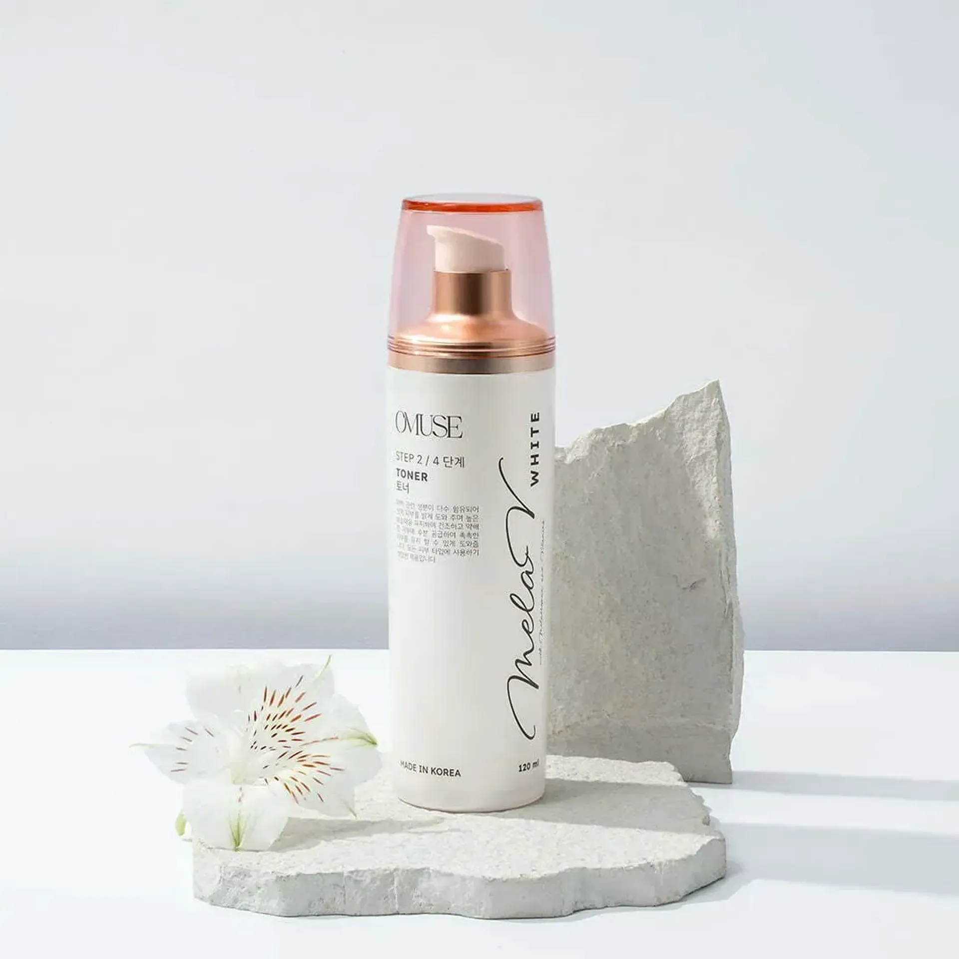 Công dụng: O’Muse MelaV Toner là nước hoa hồng dưỡng trắng dịu nhẹ ứng dụng công nghệ tiên tiến Melatrepein và Cbio White giúp cân bằng độ pH trên da, cấp ẩm và dưỡng sáng da. Sản phẩm phù hợp với người có làn da sạm, nám, tàn nhang, không đều màu.