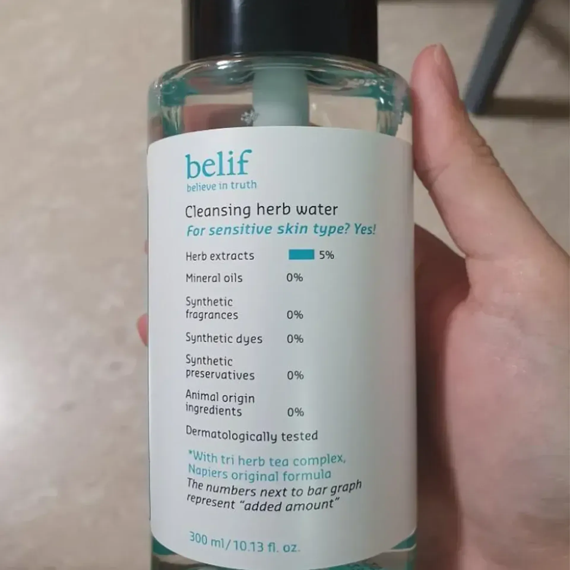 Nước tẩy trang thảo mộc làm sạch sâu BELIF Cleansing Herb Water không chứa thành phần dầu khoáng, giúp loại bỏ sạch lớp trang điểm cứng đầu và bụi bẩn. Không những vậy, sản phẩm còn giúp bổ sung độ ẩm ổn định giúp bề mặt da luôn ẩm mịn, ngừa tình trạng thoát nước và khô căng sau khi tẩy trang.