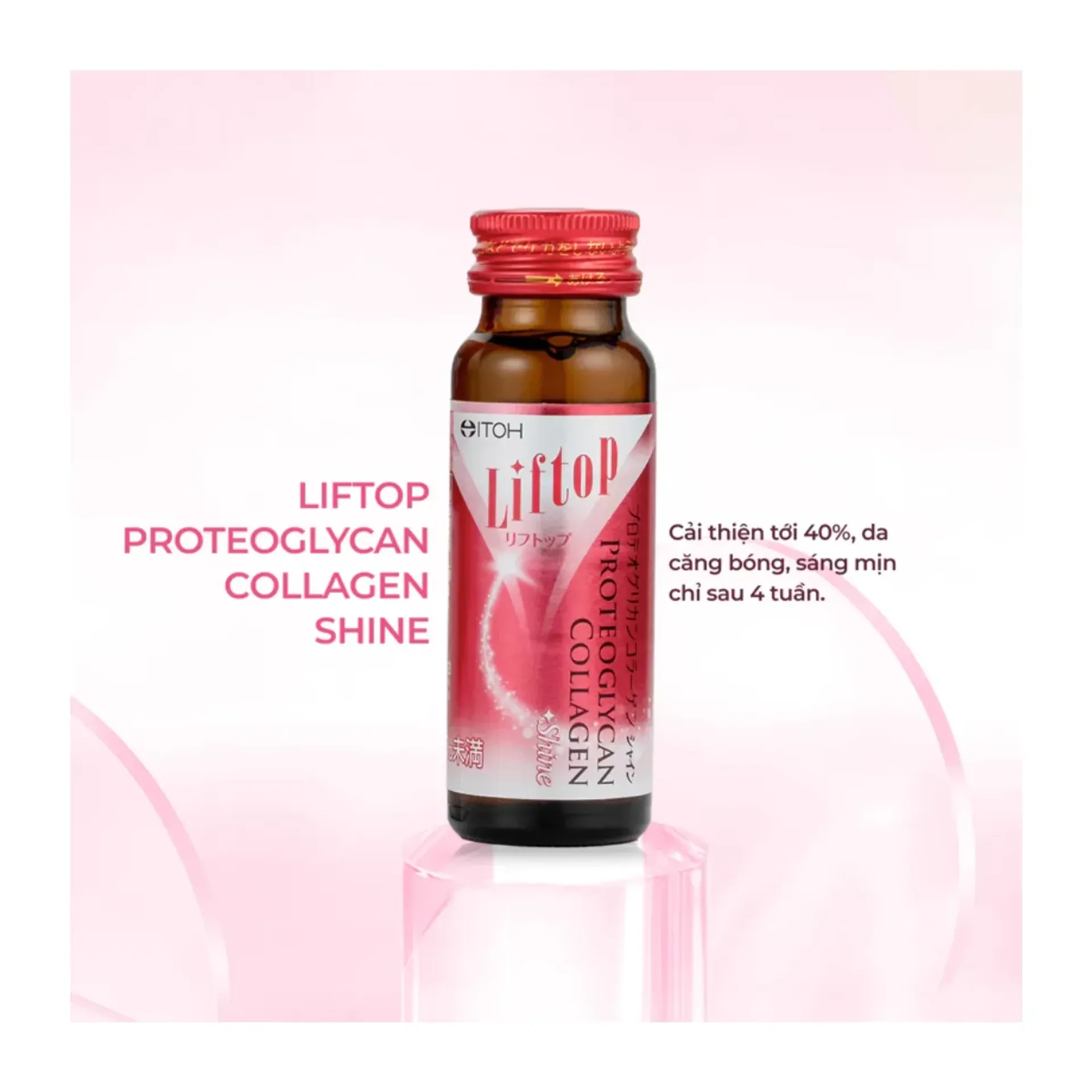 Liftop Proteoglycan Collagen Shine là bước đột phá trong công nghệ chăm sóc da đến từ ITOH Kanpo Pharmaceutical, thương hiệu dược – mỹ phẩm lâu đời với hơn 130 năm kinh nghiệm tại Nhật Bản. Sản phẩm đánh dấu một bước tiến vượt trội trong lĩnh vực trẻ hóa da nhờ ứng dụng hoạt chất tiên phong Proteoglycan, được mệnh danh là “chìa khóa vàng” trong công nghệ tái tạo cấu trúc nền da.