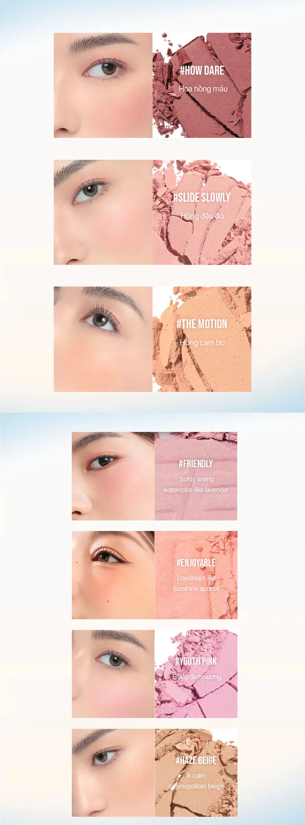 - Hạt phấn siêu mịn, lên màu chuẩn xác và đồng đều