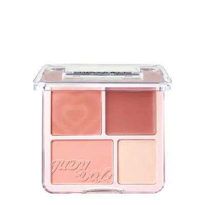 - Thiết kế 4 trong 1: Kết hợp giữa các ô phấn lì và ánh nhũ, giúp dễ dàng tạo khối, làm nổi bật đường nét gương mặt và mang lại hiệu ứng má ửng hồng tự nhiên.