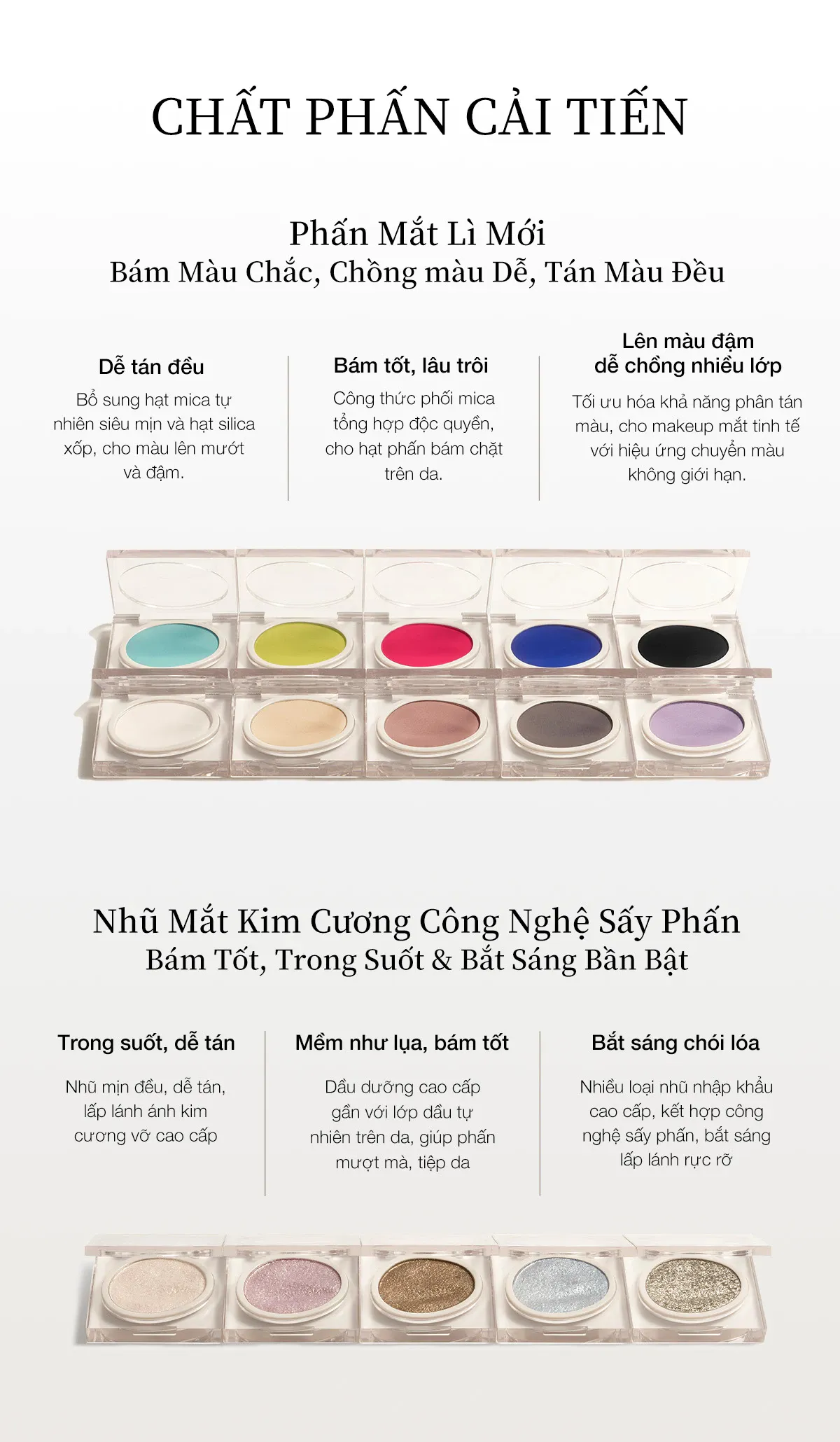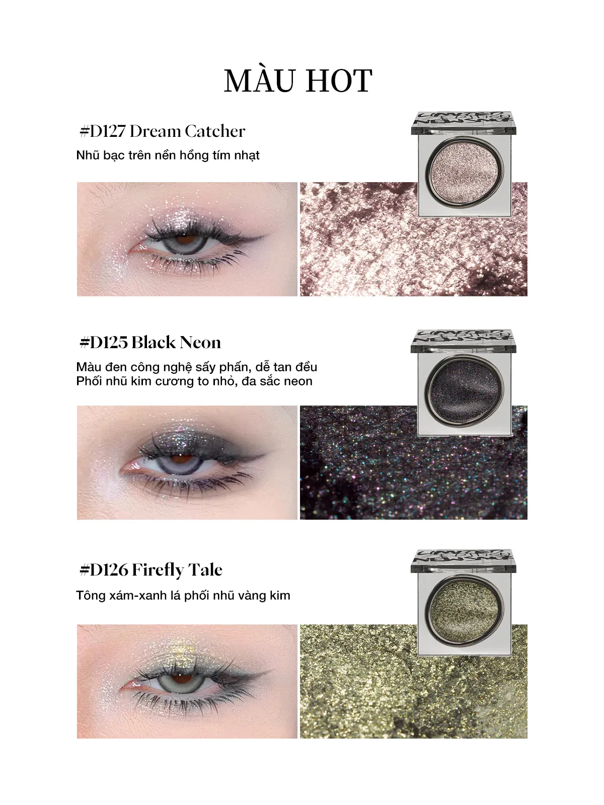- Ánh nhũ tinh tế: Hạt phấn nhũ phản chiếu ánh sáng tuyệt đẹp, tạo hiệu ứng bắt sáng lung linh cho vùng mắt.