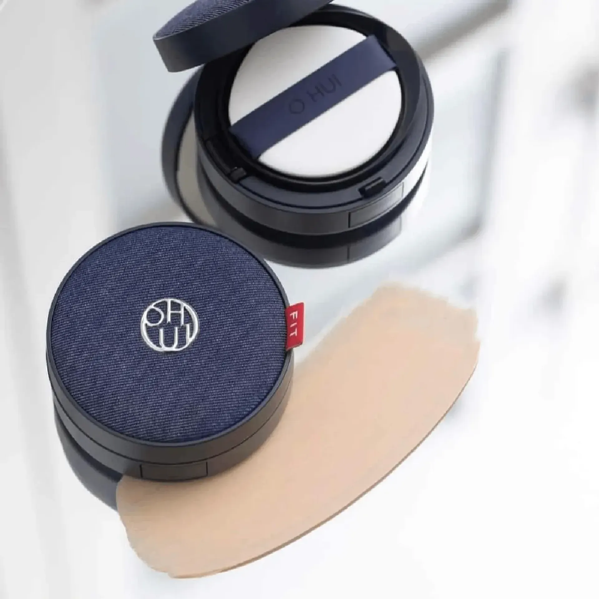 Phấn nước Ohui Ultimate Fit Longwear Jean Cushion chứa công thức dạng nước có khả năng bổ sung ẩm, duy trì lớp nền mỏng nhẹ, che mờ khuyết điểm như đốm nâu, tàn nhang, thâm mụn… Giữ cho lớp nền tệp vào da, trong suốt và bền màu suốt 36 giờ.