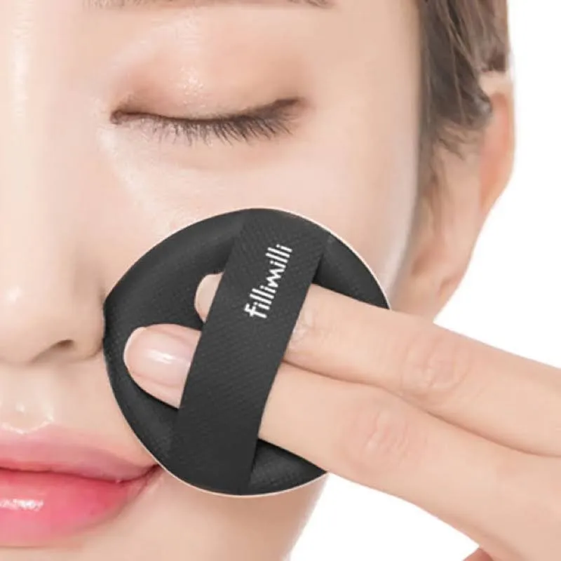 Sau khi dưỡng ẩm da mặt, dùng bông mút lấy 1 lượng phấn nước vừa đủ dặm đều lên mặt để che phủ khuyết điểm.
