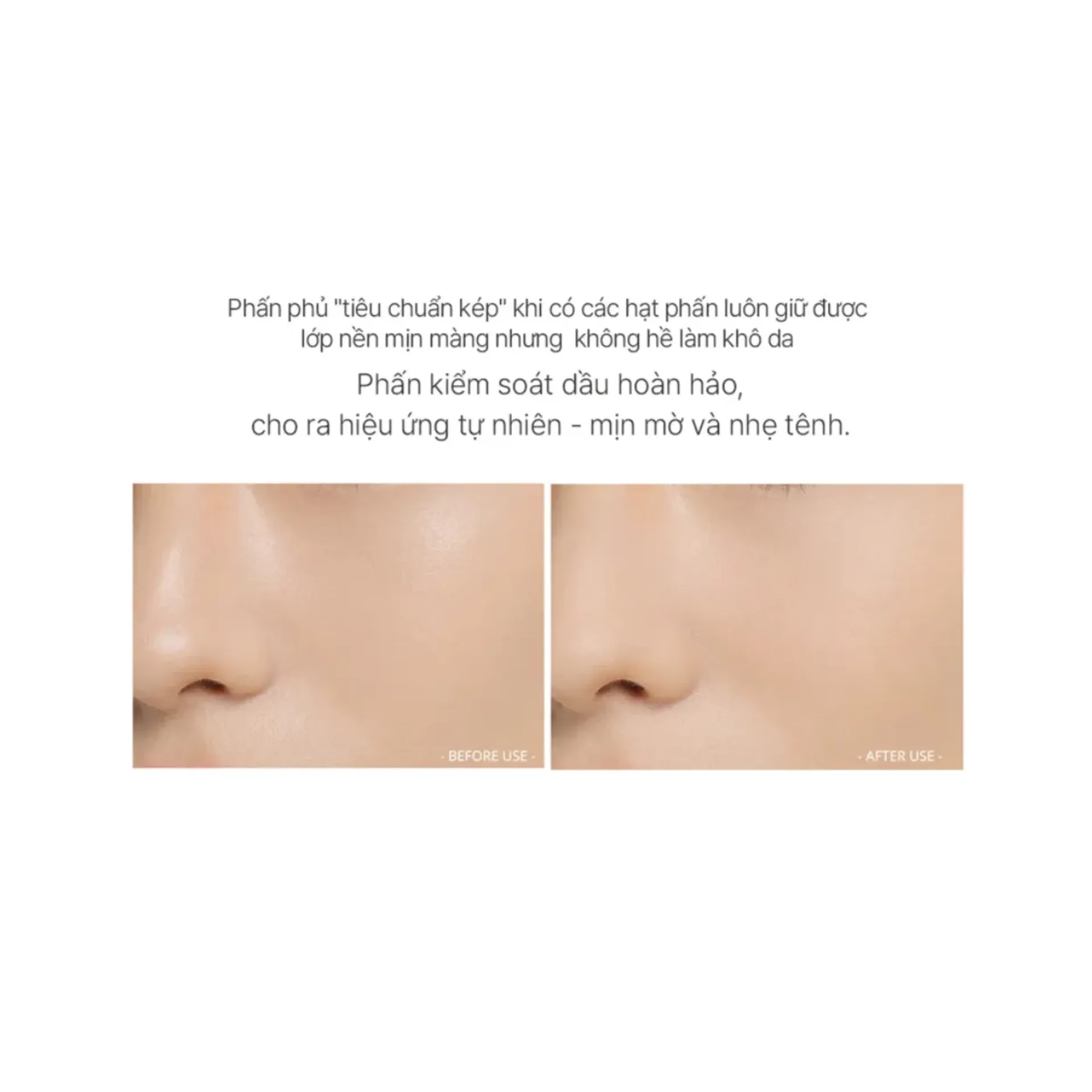 - Kiềm dầu tốt: duy trì độ khô thoáng và kiểm soát dầu thừa trên mặt tốt trong suốt cả ngày mà không làm lớp trang điểm bị trôi.